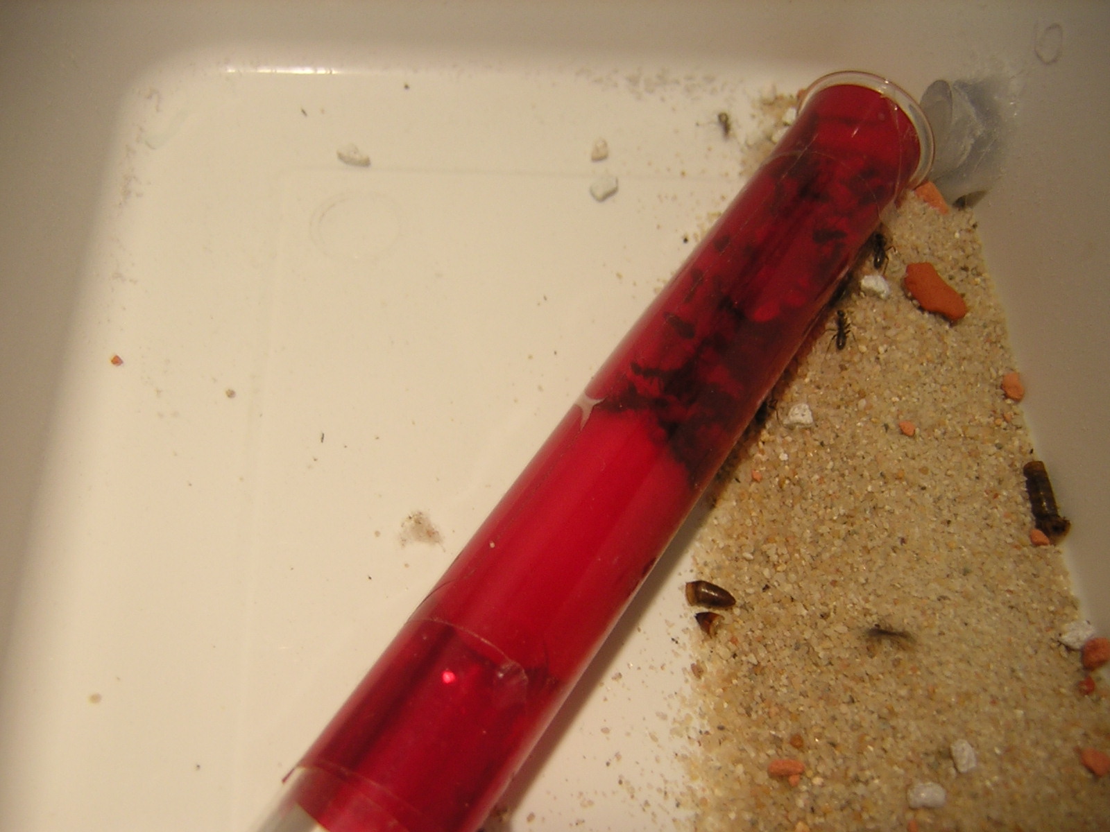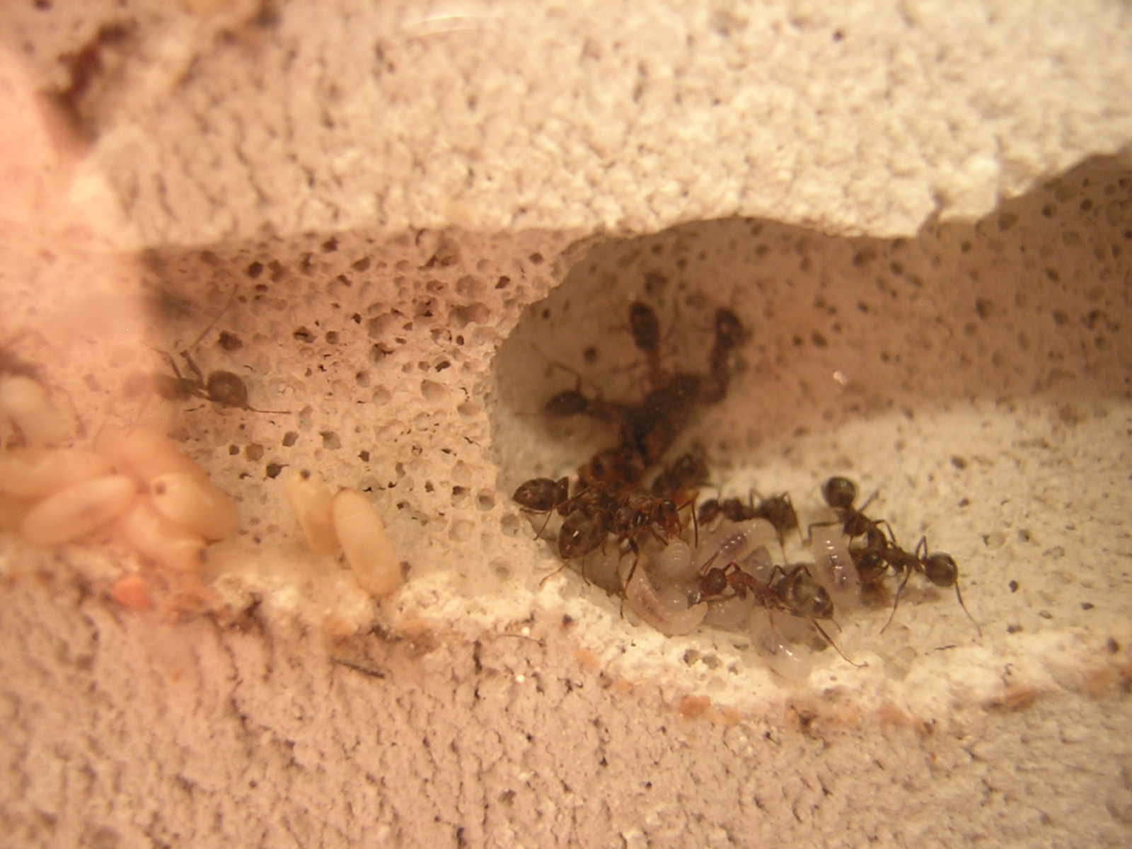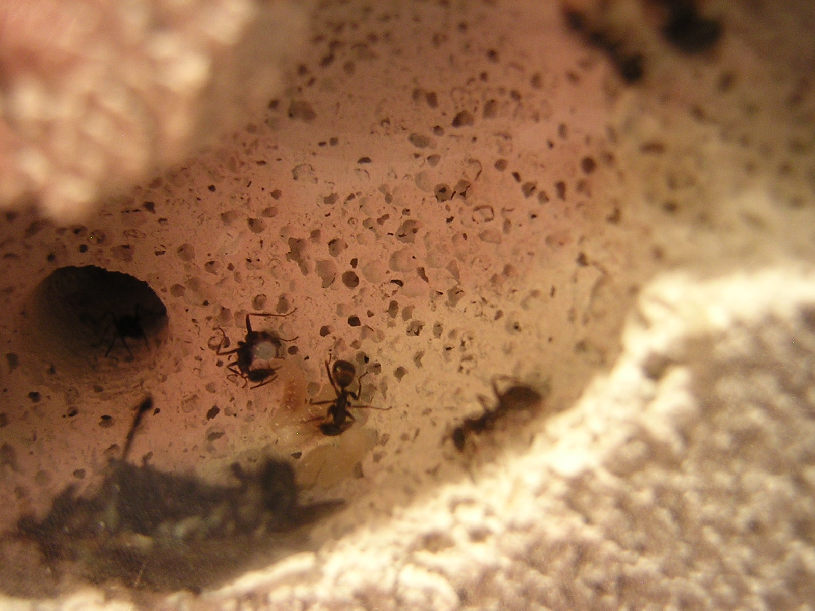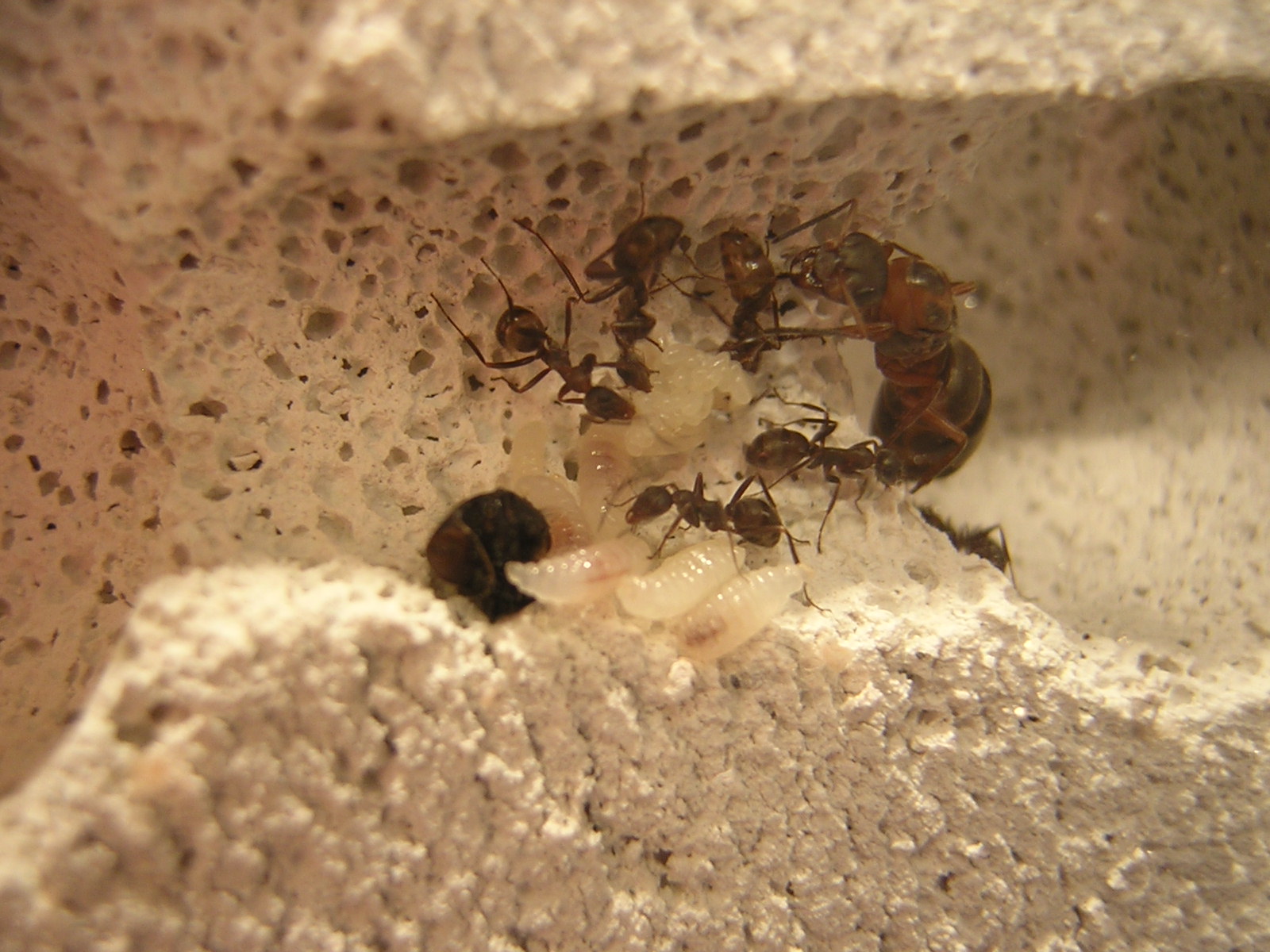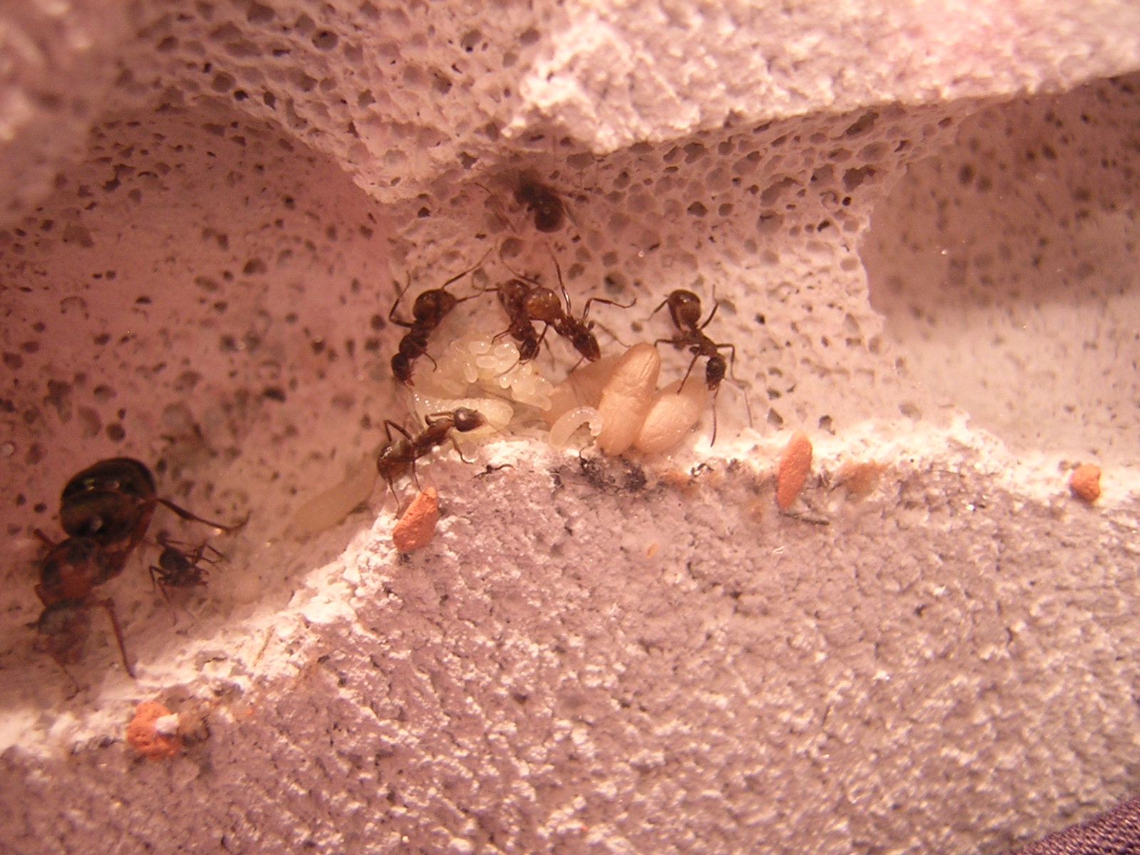 Werde aber bald den Ytong wässern, jedoch lediglich um herauszufinden ob die Ameisen die Trockenheit im Ytong wirklich so angenehm empfinden wie es scheint oder ob sie sich im feuchten Ytong genauso wohl fühlen.(Werde aber erst ein weiteres Ytong-Nest anfertigen, das trocken bleibt und als Rückzugmöglichkeit dienen soll, falls die Kolonie die Feuchtigkeit als zu hoch empfindet.)