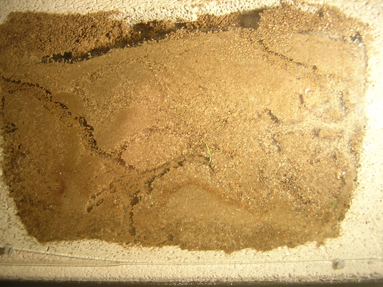 Mittlerweile nutzt die Kolonie das gesamte Nest(trockener/feuchter Bereich) und die Arena, in der immer mal wieder einzelne Individuen nach essbaren suchen und es einbringen.