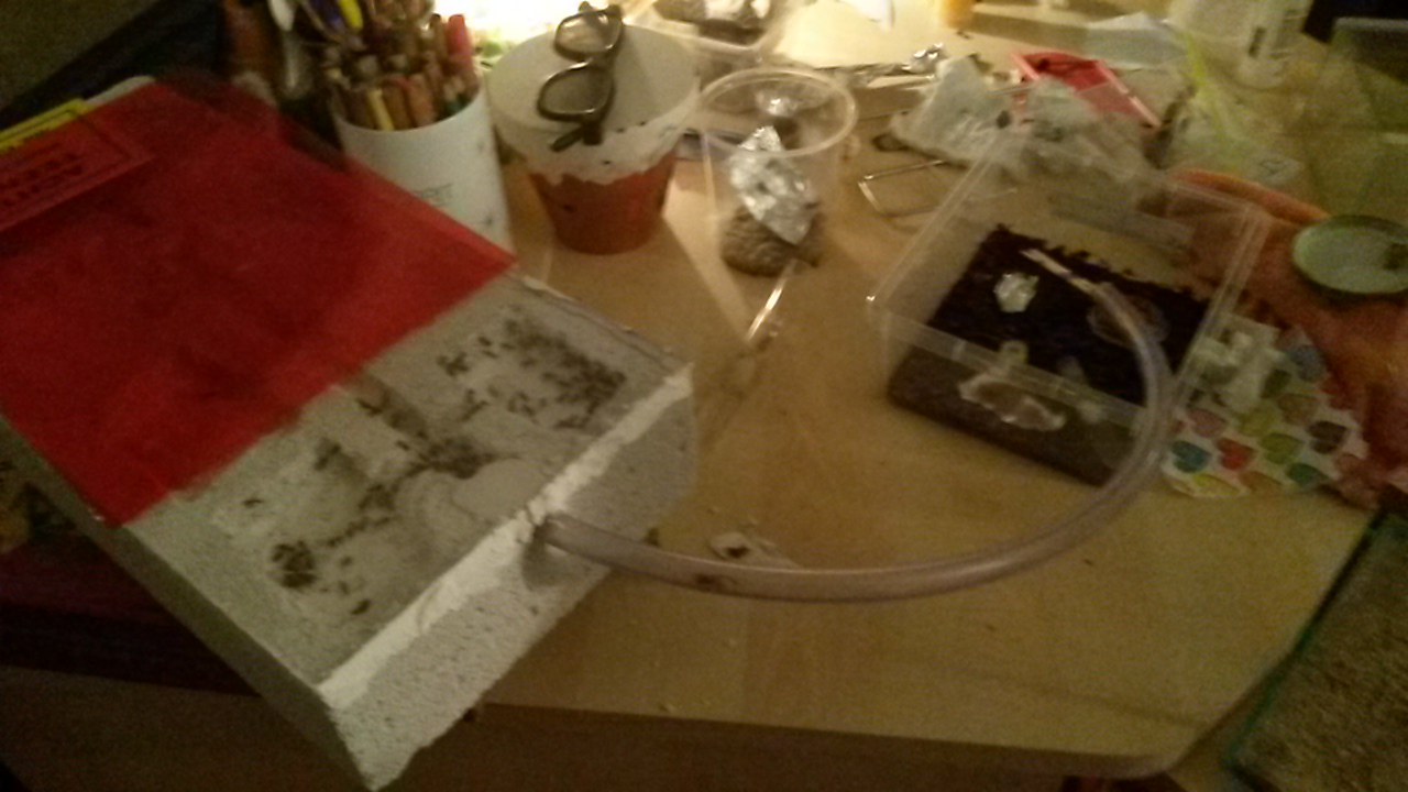 Habe es mit einem Schlauch mit ihrer Box verbunden. Der Schlauch ist mit Parafinöl eingerieben. Wenn sie im Ytong Nest eingezogen sind, ändere ich den Bodengrund der Box oder wechsel gleich gegen mein altes 30x20cm Becken.