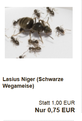 - es hier jemand (ich) widerlich findet, Ameisen durch anscheinende "Sonderangebote" attraktiver gestaltet werden sollen (Statt 1,00 EUR Nur 0,75 EUR)