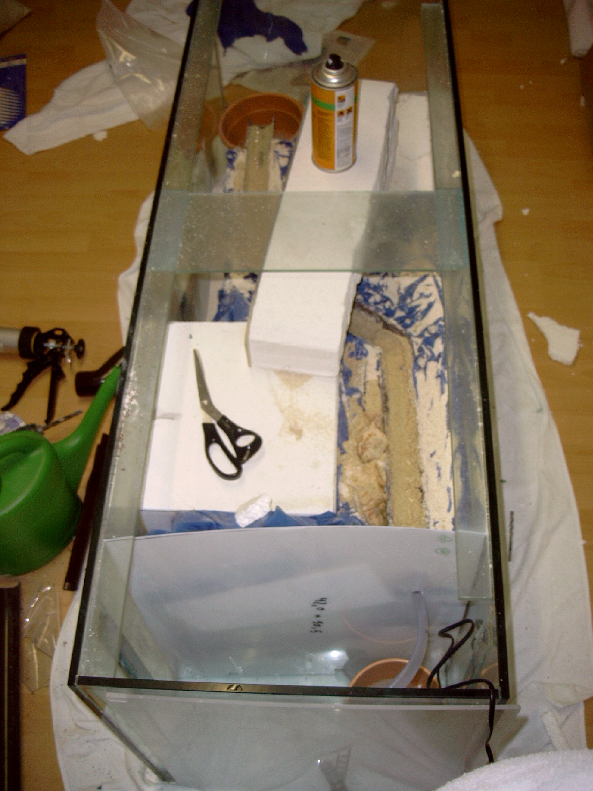 So ich hab mal weitergebaut, damit die ganze Konstruktion nicht zu schwer wird hab ich den Unterbau komplett aus Styropor und diesem Material das Blumenläden für Trockengestecke benutzen gebaut.