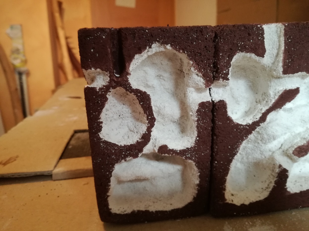 Das Ytong-Nest wurde anschlieĂend ausgewaschen, die Nistkammern mit einer sehr dĂŒnnen Gips-Mischung ausgepinselt und im nassen Zustand mit weiĂem Sand-/Lehm-Gemisch ausgeworfen.