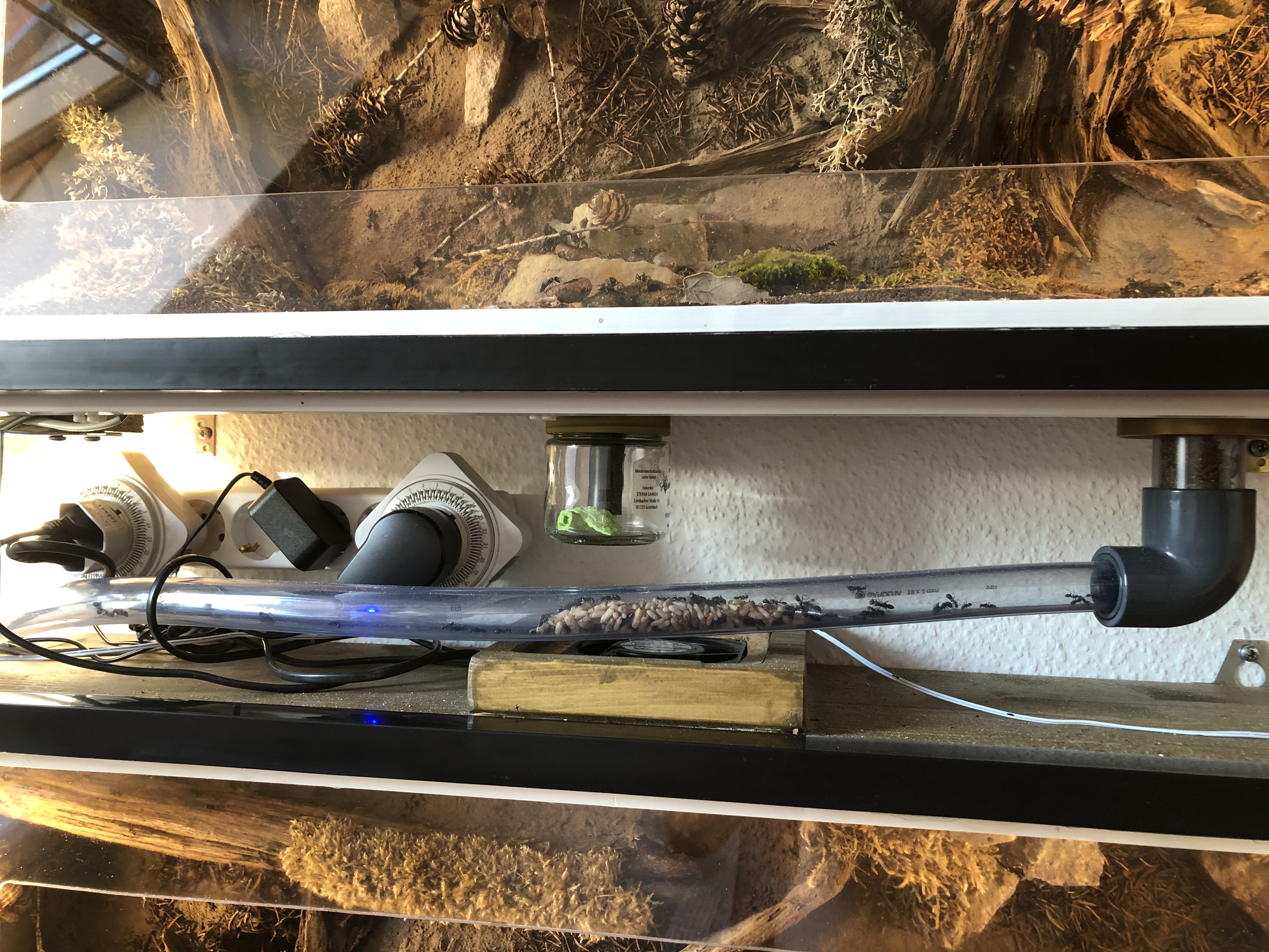 Das wĂ€re das Gröbste zum Formikarium. Bisher funktioniert es wie geplant, es wurde gut angenommen. Die FĂŒtterung erfolgt auf den Plattformen die durch eine Luke zugĂ€nglich sind