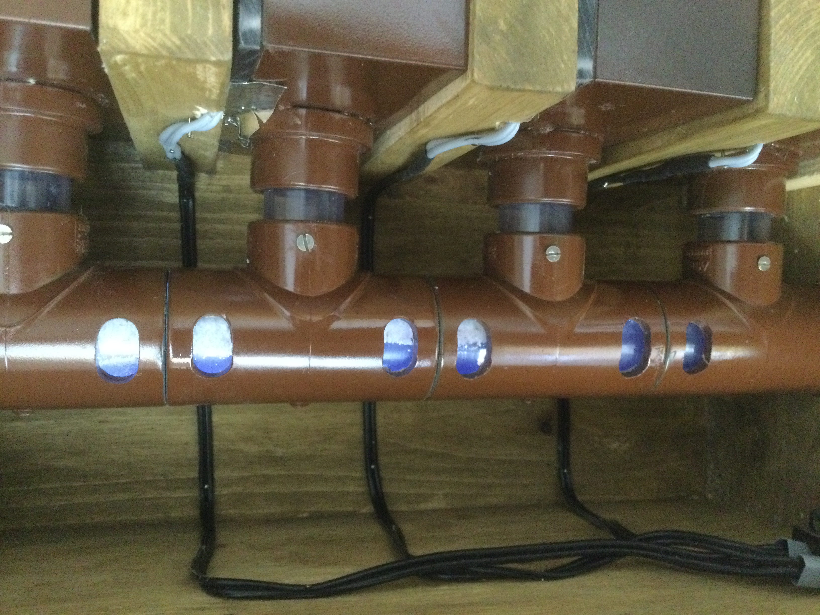 fĂŒr einen besseren Grip fĂŒr die Ameisen habe ich mit Epoxidharz und Sand den halben Rohrdurchmesser besandet. Das scheint gut zu klappen. Die Sichtfenster habe ich als Kontrollpunkte gedacht, um zu sehen was dort abgeht.