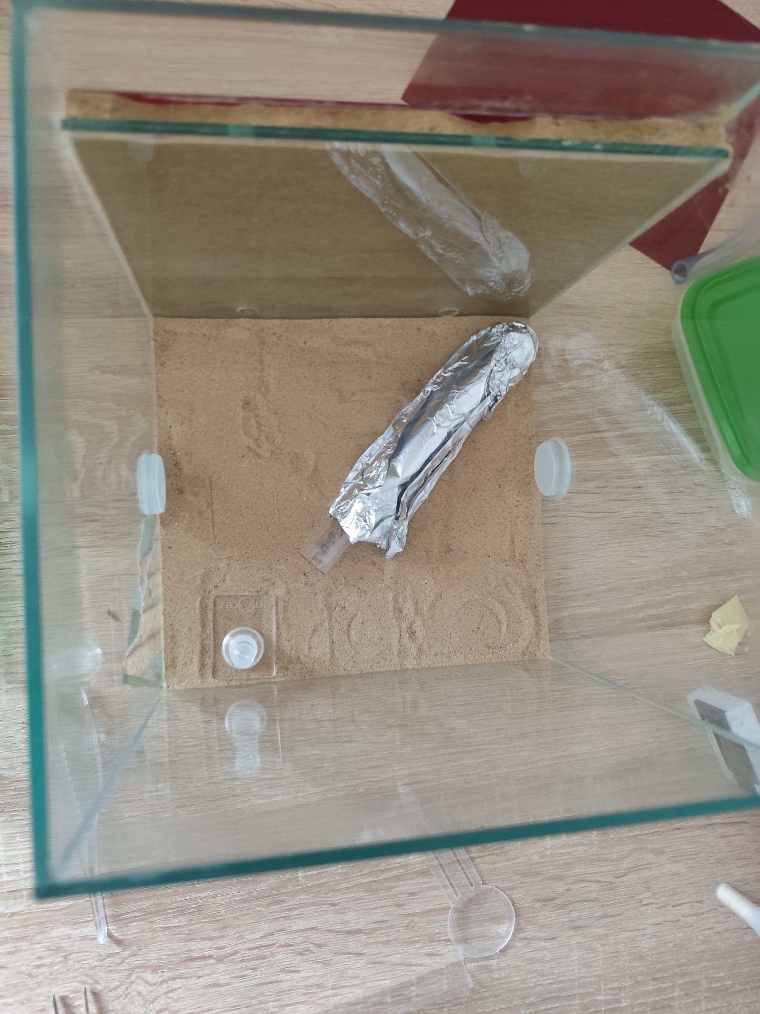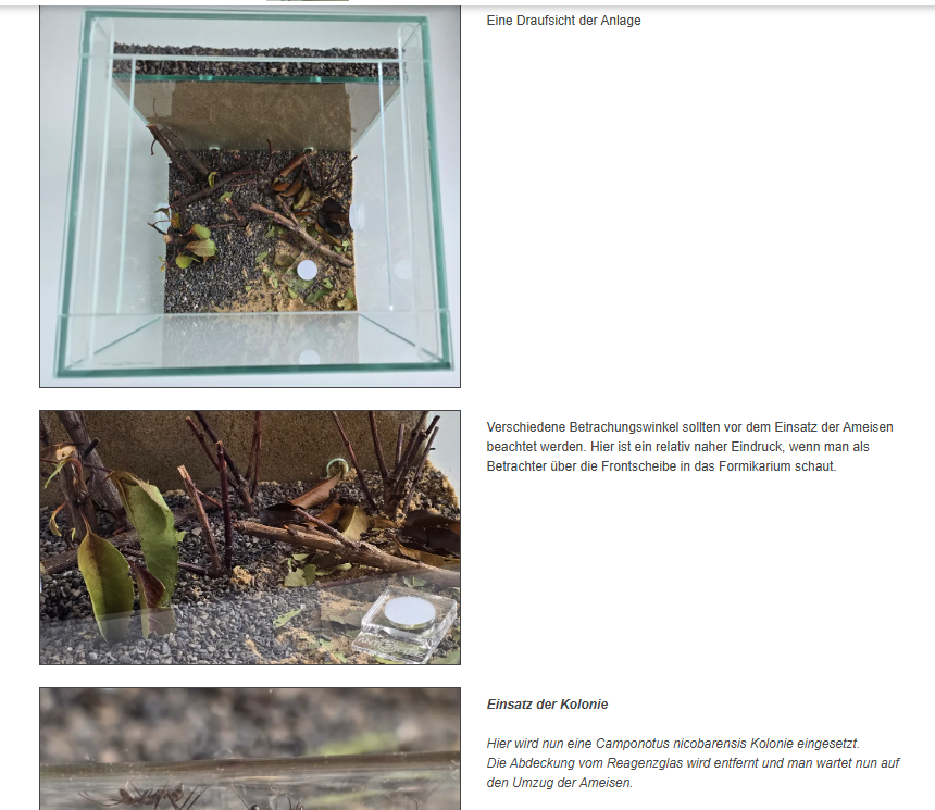 Als Tipp: Du kannst der doch noch kleinen Kolonie das Leben einfacher machen, wenn das Futter vor dem Reagenzglas platziert wird.