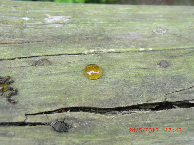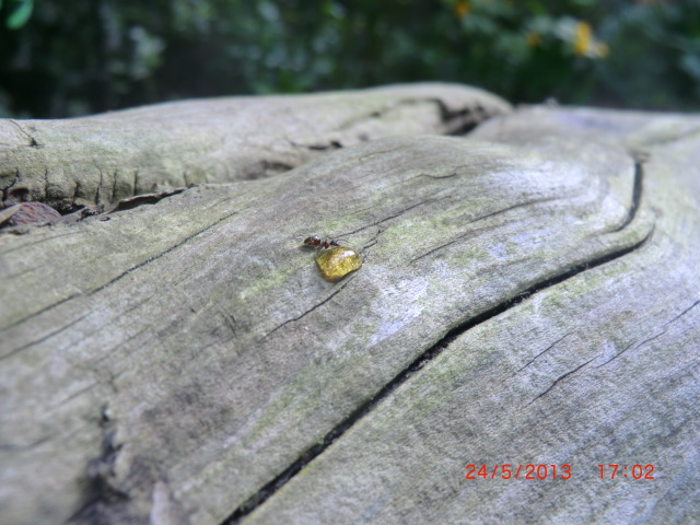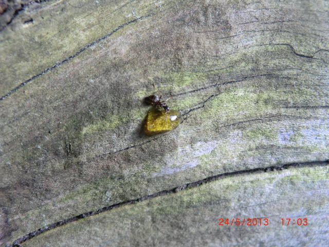 Die erste Ameise die den Honig fand war Schwarz, max. 4mm groß.