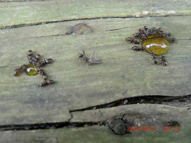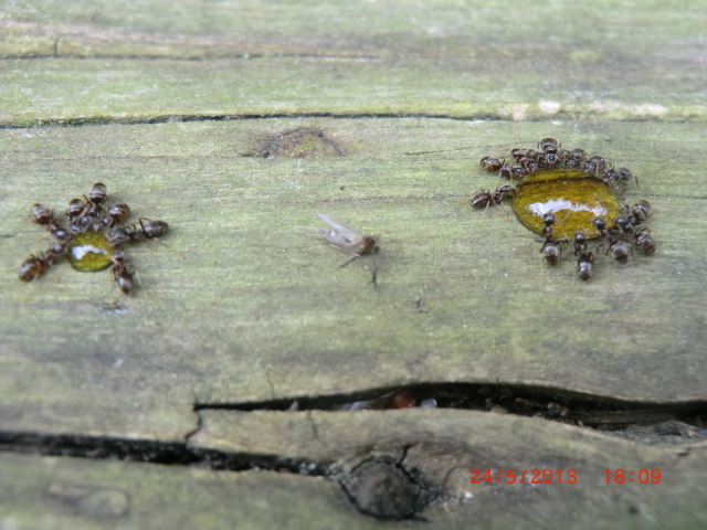 18:35 Uhr, Die erste Ln (Lasius sp.) beim Honigtrinken