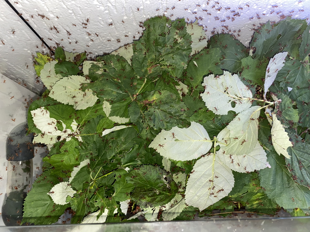 Bei kleinen Kolonien, in der Gründungsphase sowie den ersten Wochen und Monaten danach, würde ich empfehlen die Klassiker anzubieten: Rosenblätter, Brombeerblätter, Rosenblütenblätter, Ligusterblätter, Laub von Obstbäumen, Eibe,...