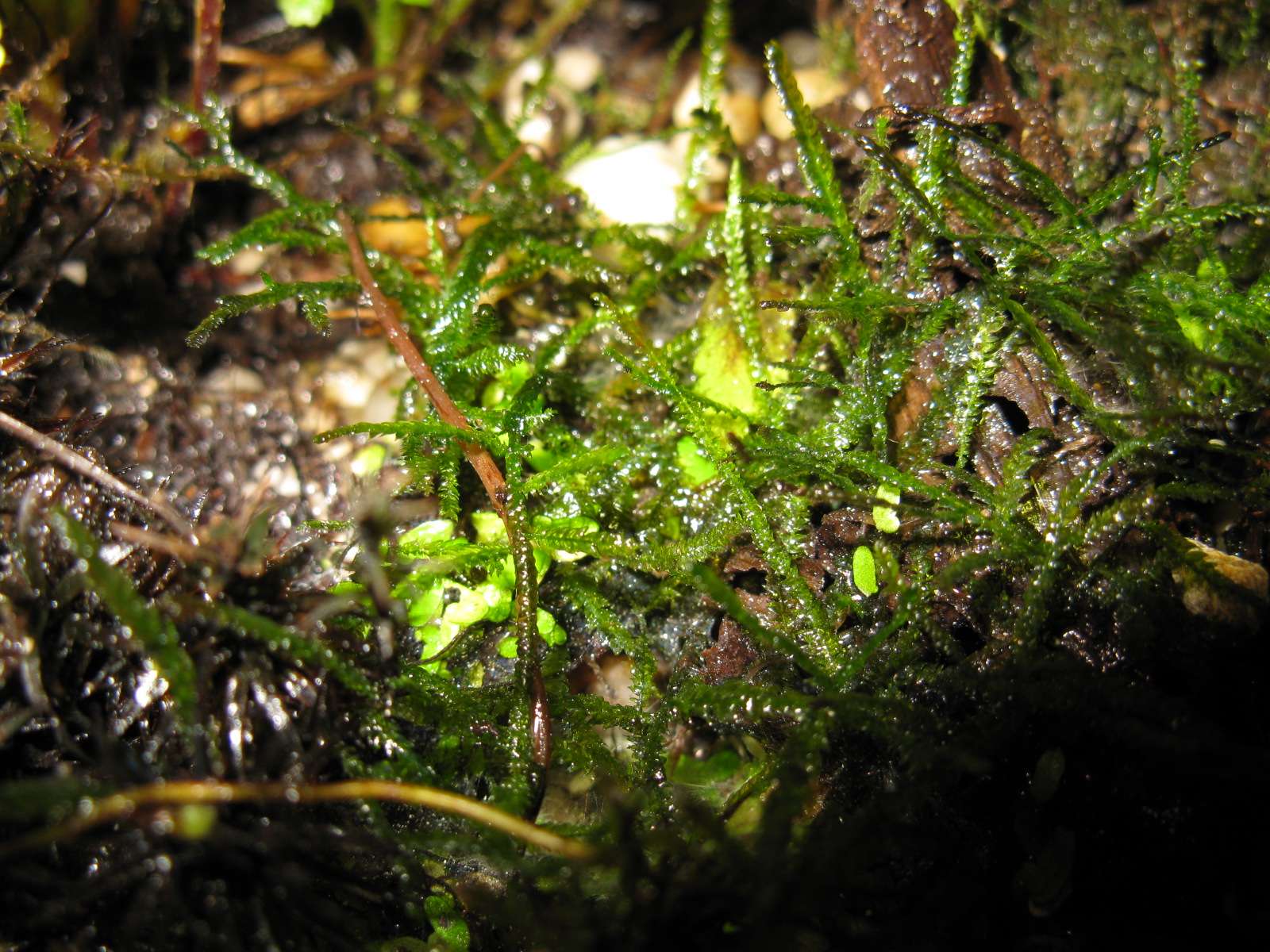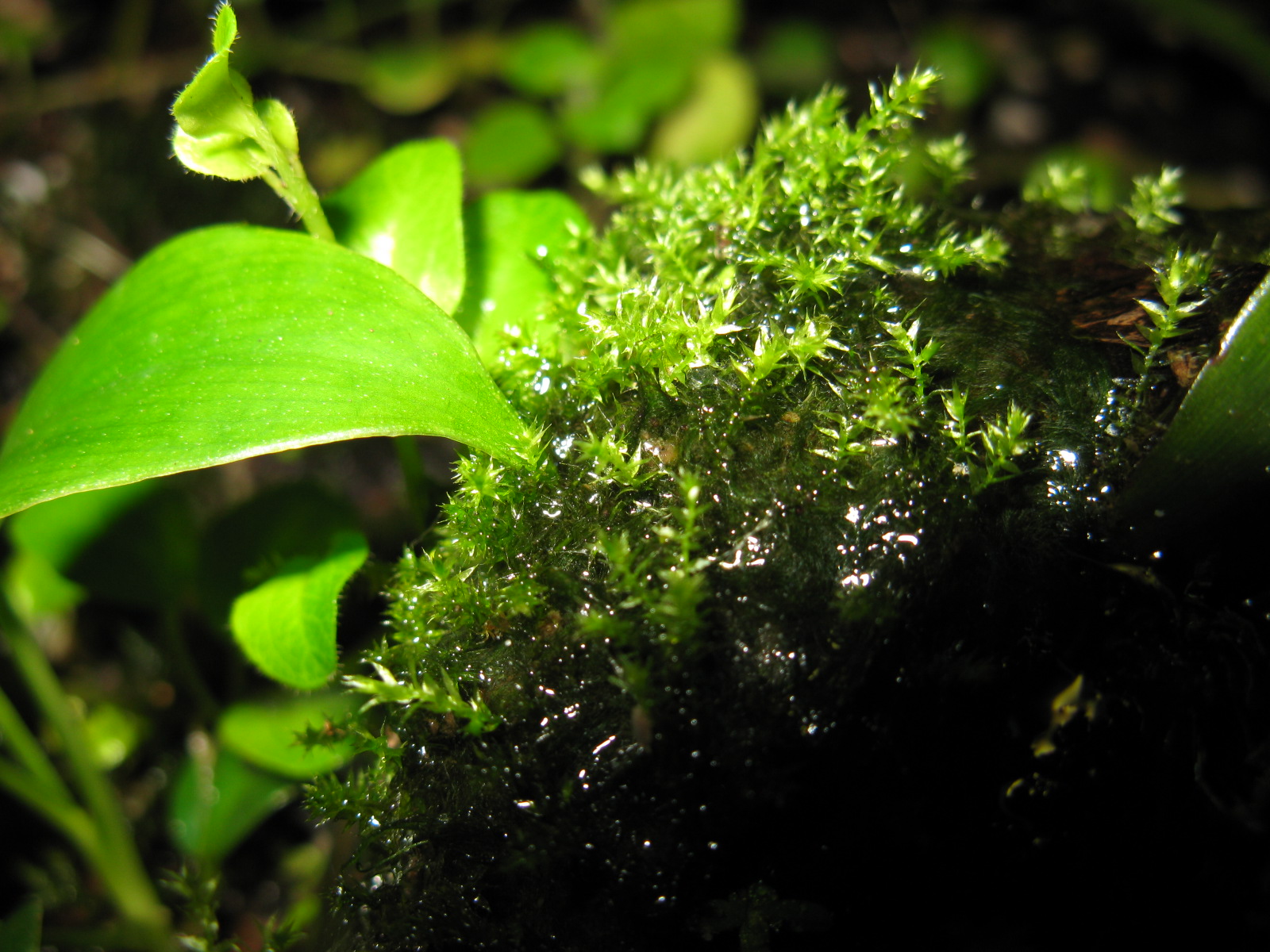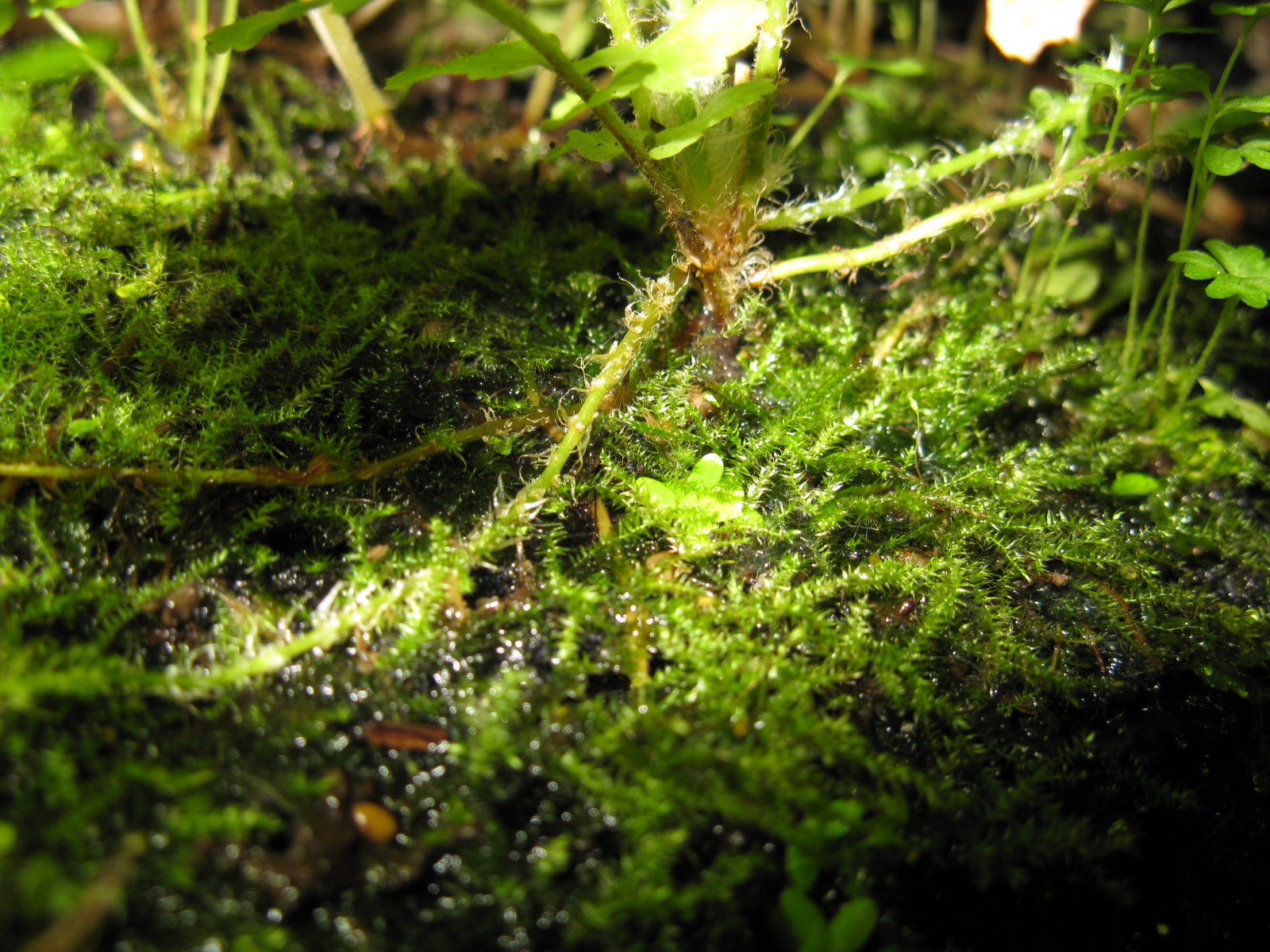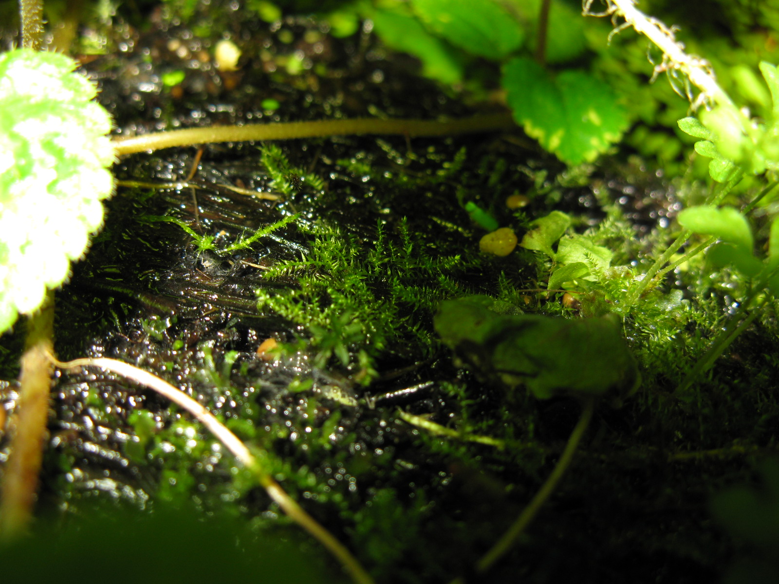 Fotos von verschiedenen Moosen im Terrarium. Die Moose wachsen langsam, aber ĂĽberall und bilden teilweise dichte Rasen.