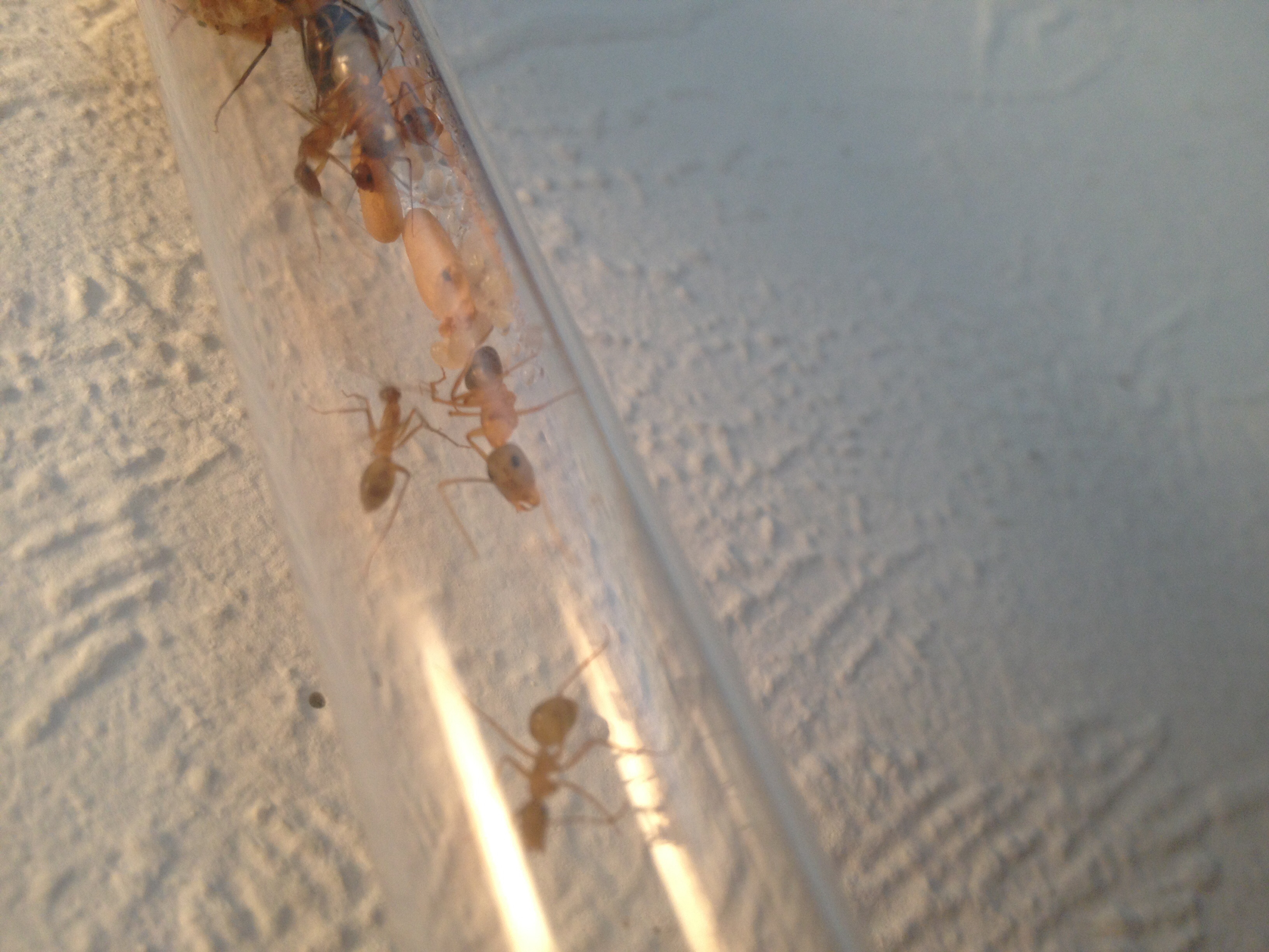 Jetzt habe ich hier 4 sozialparasitär gründende Gynen sitzen und komme erst Morgen an viele Puppen. Jetzt muss ich wohl inprovisieren. An Niger habe ich hier ca. 8 Niger Gynen mit ersten Puppen und gelben Arbeiterinnen. Kennt sich hier jemand mit der Gründung aus? Die sind doch Polygyn, kann ich nicht direkt sozusagen eine Riesen Kolonie bilden, mit 4 Gynen? Aber der Erfolg einer Gründung ist mit 4 verschiedenen Kolonien viel verscheinlicher.