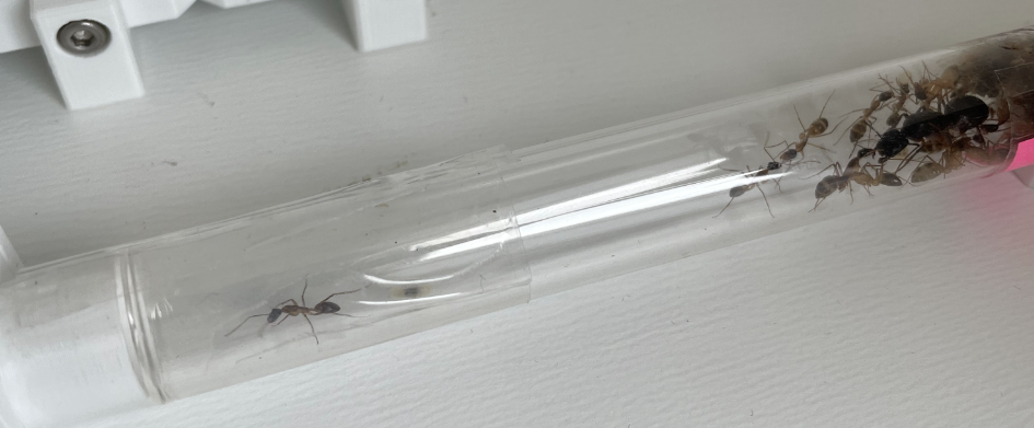 Den Schlauch der den Nestbereich mit der Arena verbindet habe ich angeraut um Ameisen die nicht so gut klettern können zu helfen. Ich denke das hätte ich mir mal locker schenken können bei dieser Art aber gut