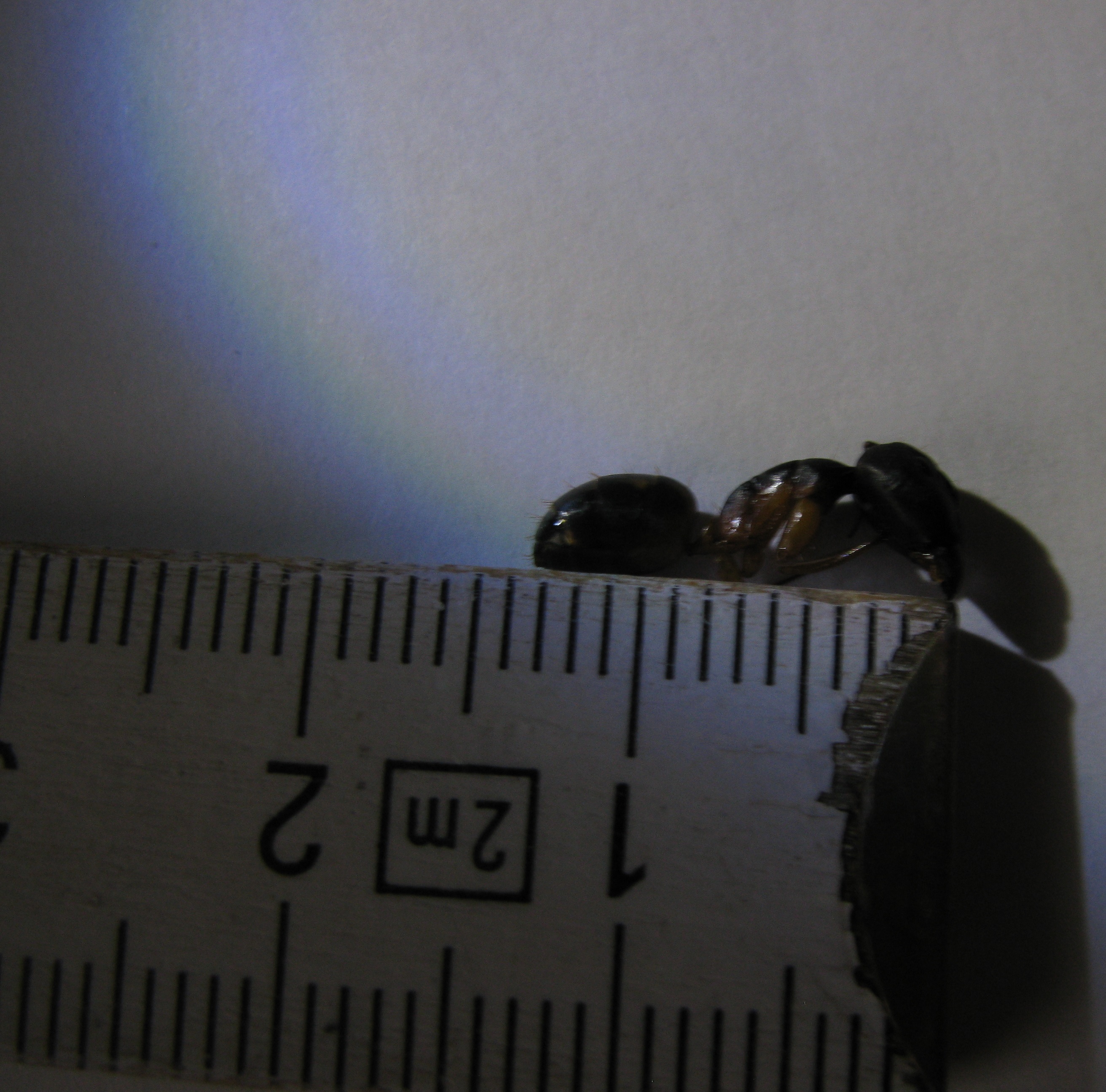 Gestern abend hab ich schon eine der gröĂeren 13,5 mm Arbeiterinnen komisch rumwackeln gesehen, das ist immer ein Zeichen dafĂŒr das die wohl die Nacht nicht mehr ĂŒberleben. Von der GröĂe her fĂ€llt das Tier in die Zwischenstufe Media zu