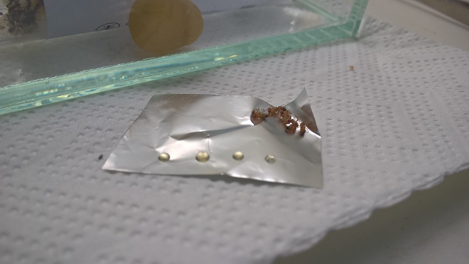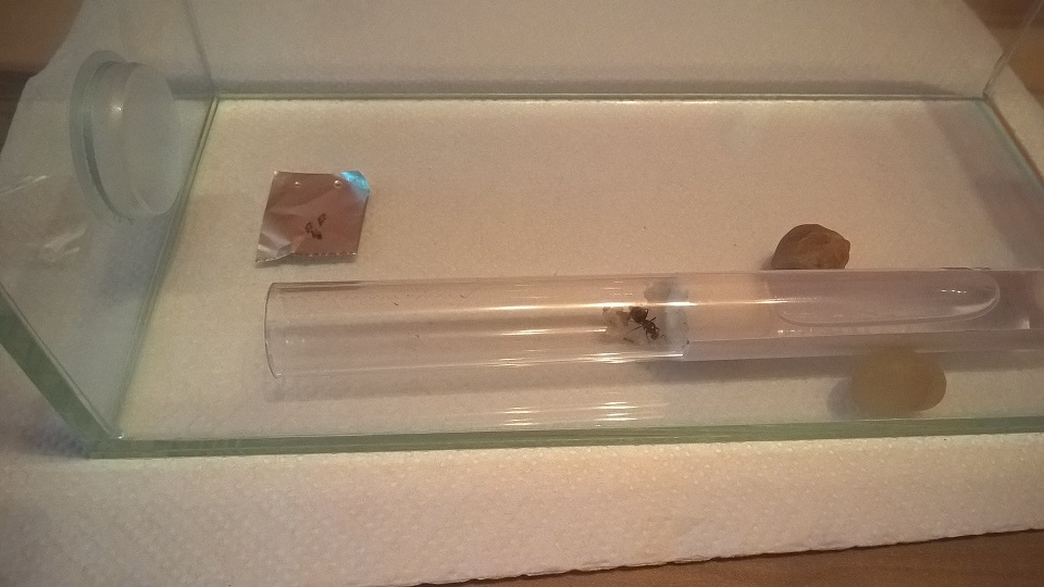 Die versprochenen Bilder von der Arena reiche ich dann nach wenn die ersten Arbeiterinnen geschlüpft sind, denn so gibt es da momentan nur einen 20cm x 10cm x 10cm Glaskasten mit Deckel und Parafinölschicht zu bestaunen, weil Deko wie gesagt erst nach der Auswinterung.