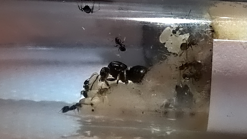 ) somit könnte ich sogar hin und wieder Lebendfutter anbieten, aber erst wenn genug Ameisen da sind um der Fliege ein schnelles Ende zu bereiten denn auch wenn es "nur" eine Fliege ist möchte ich Ihr einen möglicherweise stundenlangen Kampf doch ersparen.Gestern konnte ich noch ein Verhalten beobachten welches mir bisher nicht aufgefallen ist und ich kann es mir auch nicht so ganz erklären.