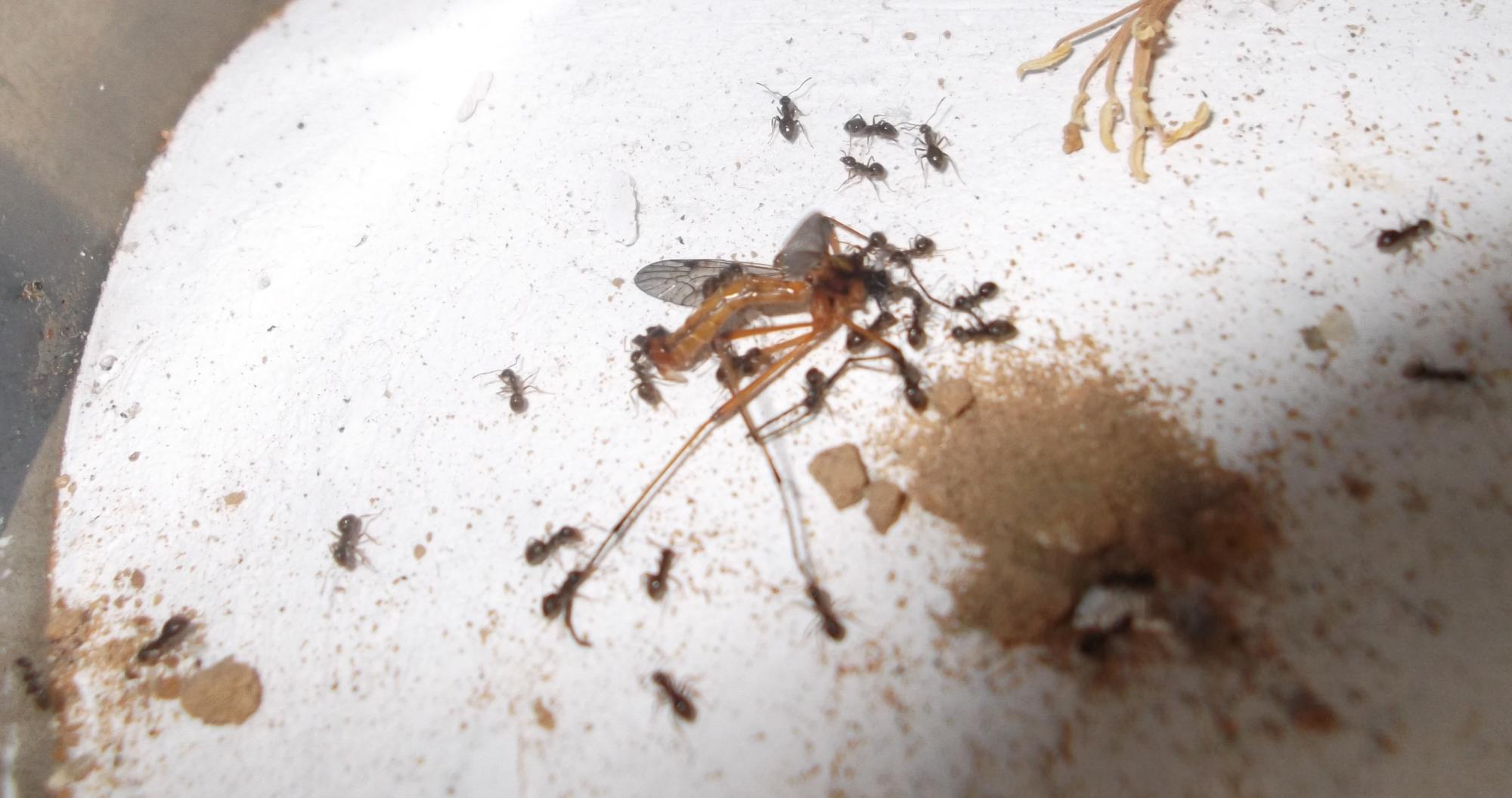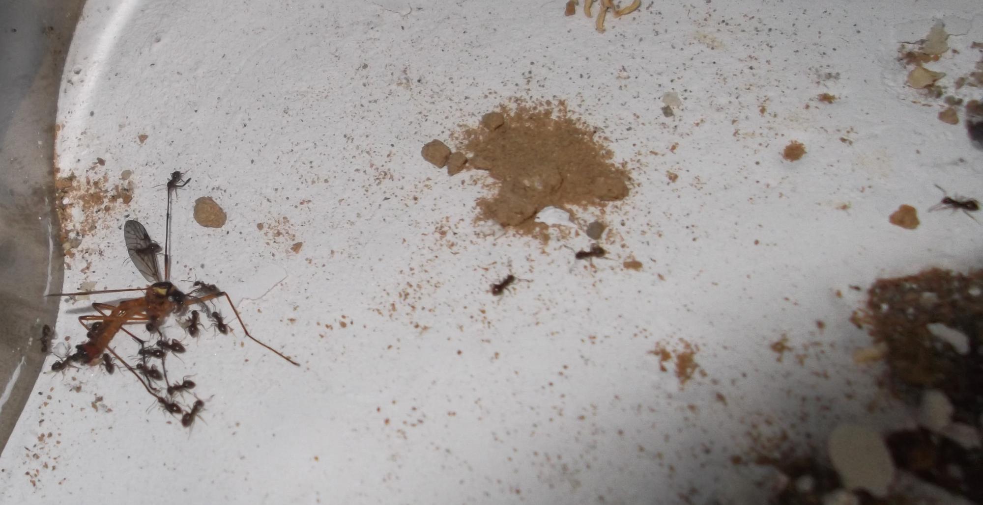 P.S. Immer wieder ist es lustig anzusehen, wie eine Arbeiterin ein - totes - Futtertier förmlich anspringt, wenn es darüber stolpert.