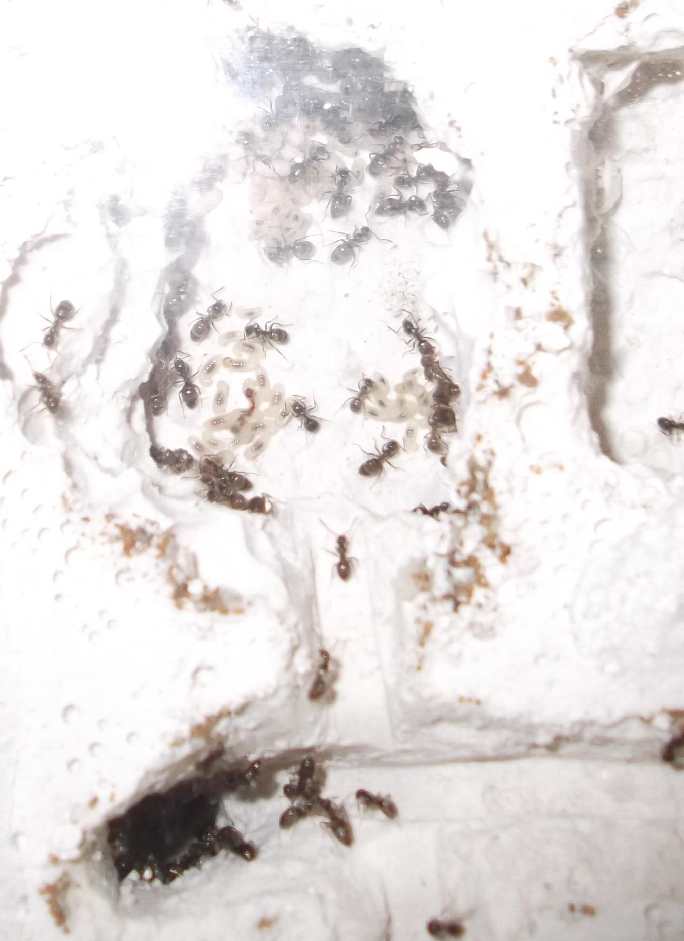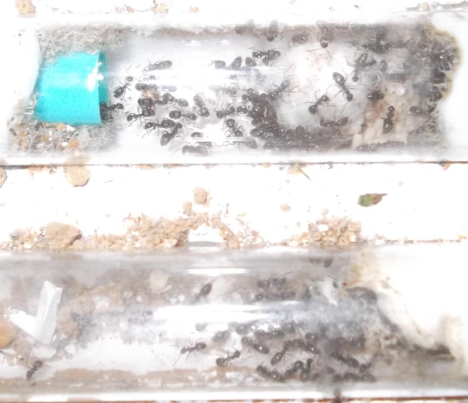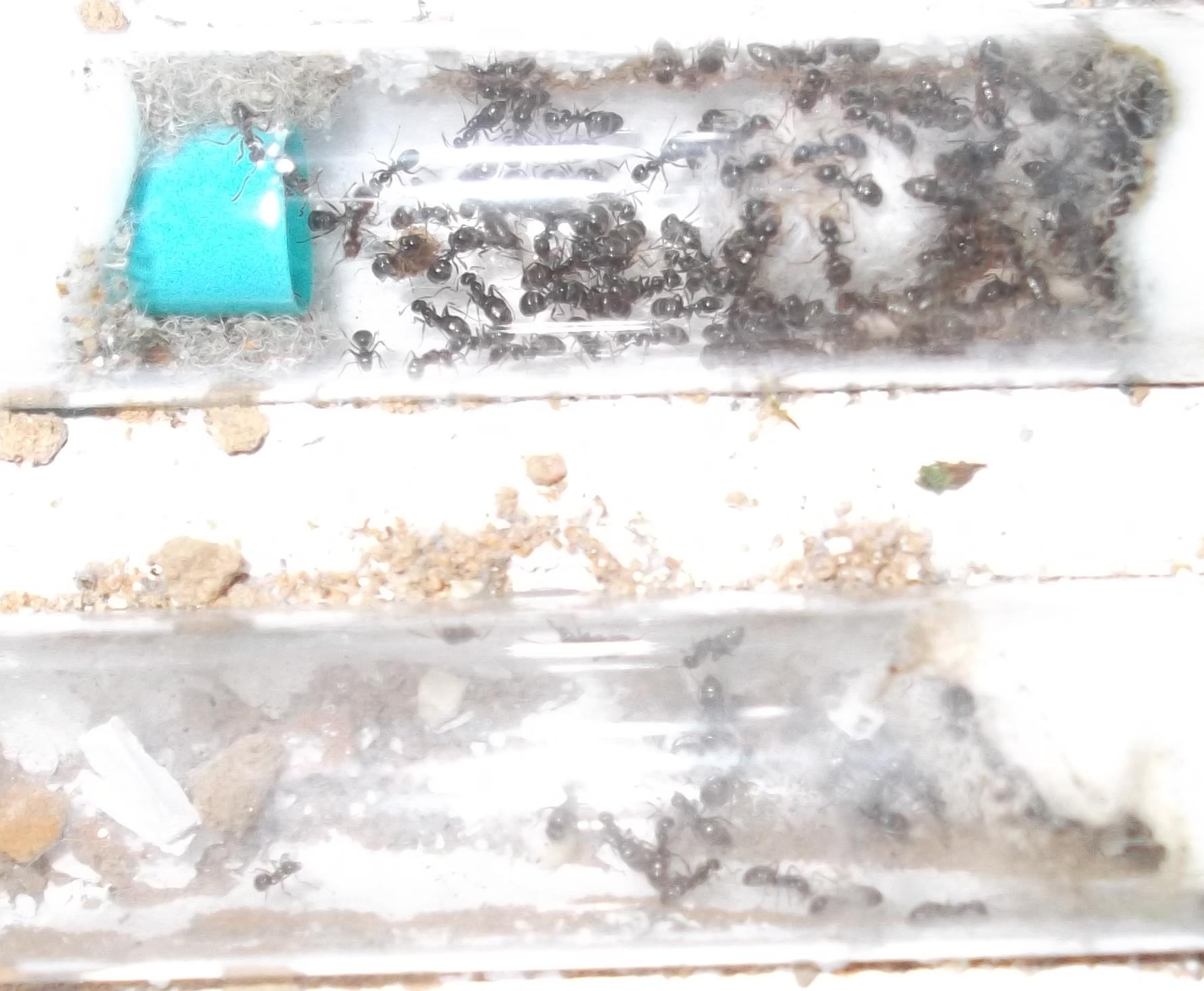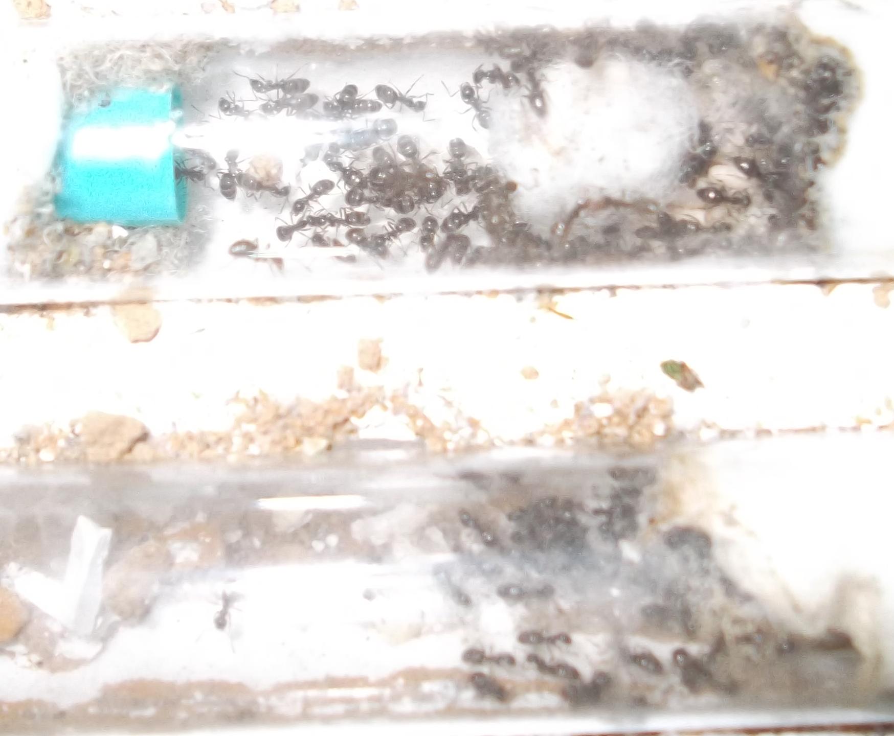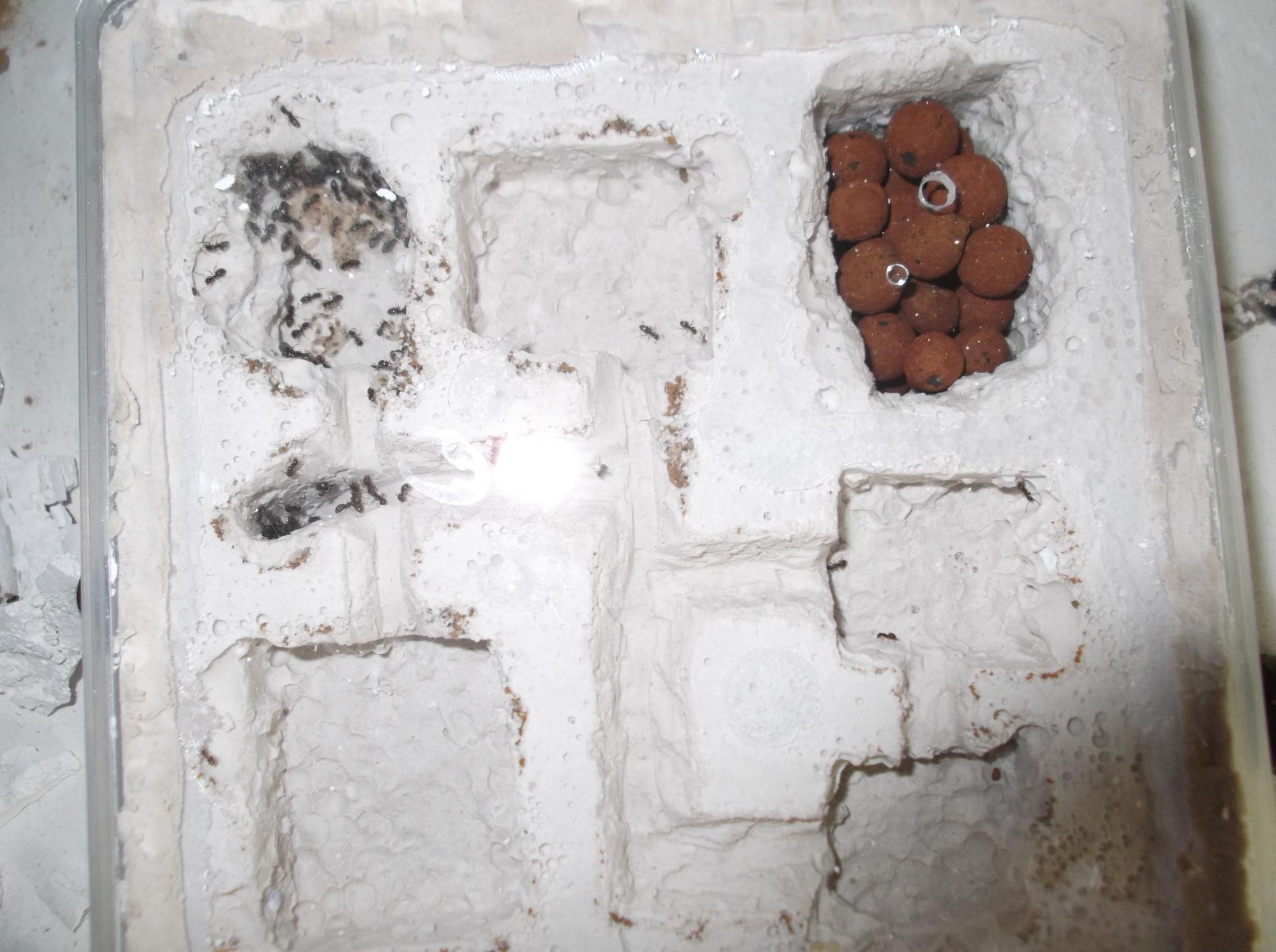 Die jüngere Kolonie wird nun nicht mehr von mir gehalten. Ärgerlich war, daß das RG, in dem ich die Ameisen verschickt hatte, während des Transports beschädigt wurde. Glücklicherweise war es trotzdem noch immer ausreichend fest verschlossen, sodaß es zu keinen Verlusten kam.
