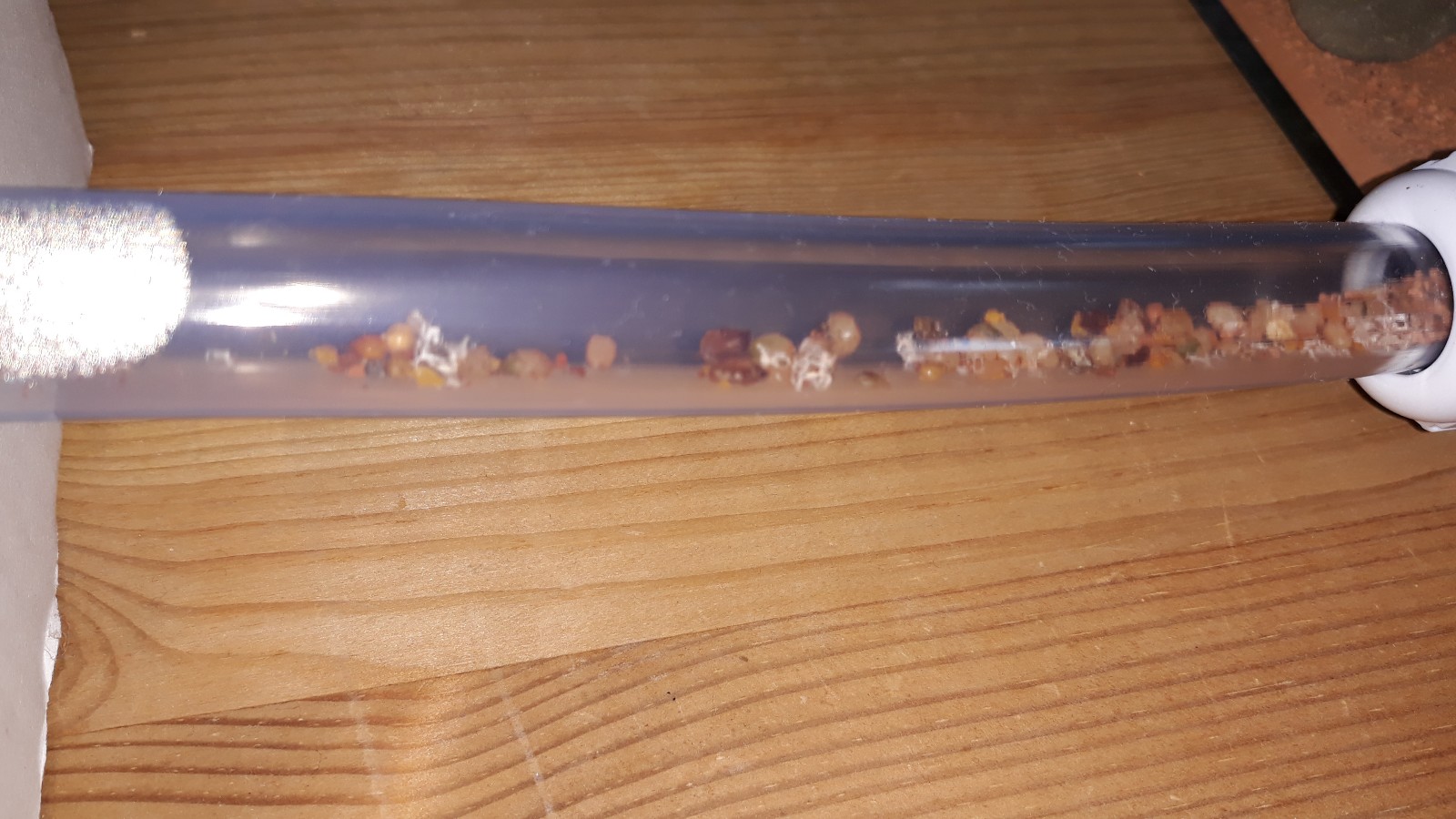 Da der Antstore und auch die anderen gängigen Ameisenseiten keine Schlauchadapter bzw. Aufteiler für 12er Innendurchmesser hatten, habe ich einen Zehnerschlauch und entsprechende Adapter gekauft. Diese verschiedenen Schläuche mussten noch zusammengesteckt werden. Ging dann leider alles trotz heißem Wasser schwerer als gedacht, und dauerte natürlich auch länger. Das RG lag locker 5 Minuten frei und wurde auch mehrmals angehoben, zudem sind ein Großteil des Kornspeichers und viele Ameisen rausgefallen. Konnte zum Glück alle wieder einsammeln, aber trotzdem.