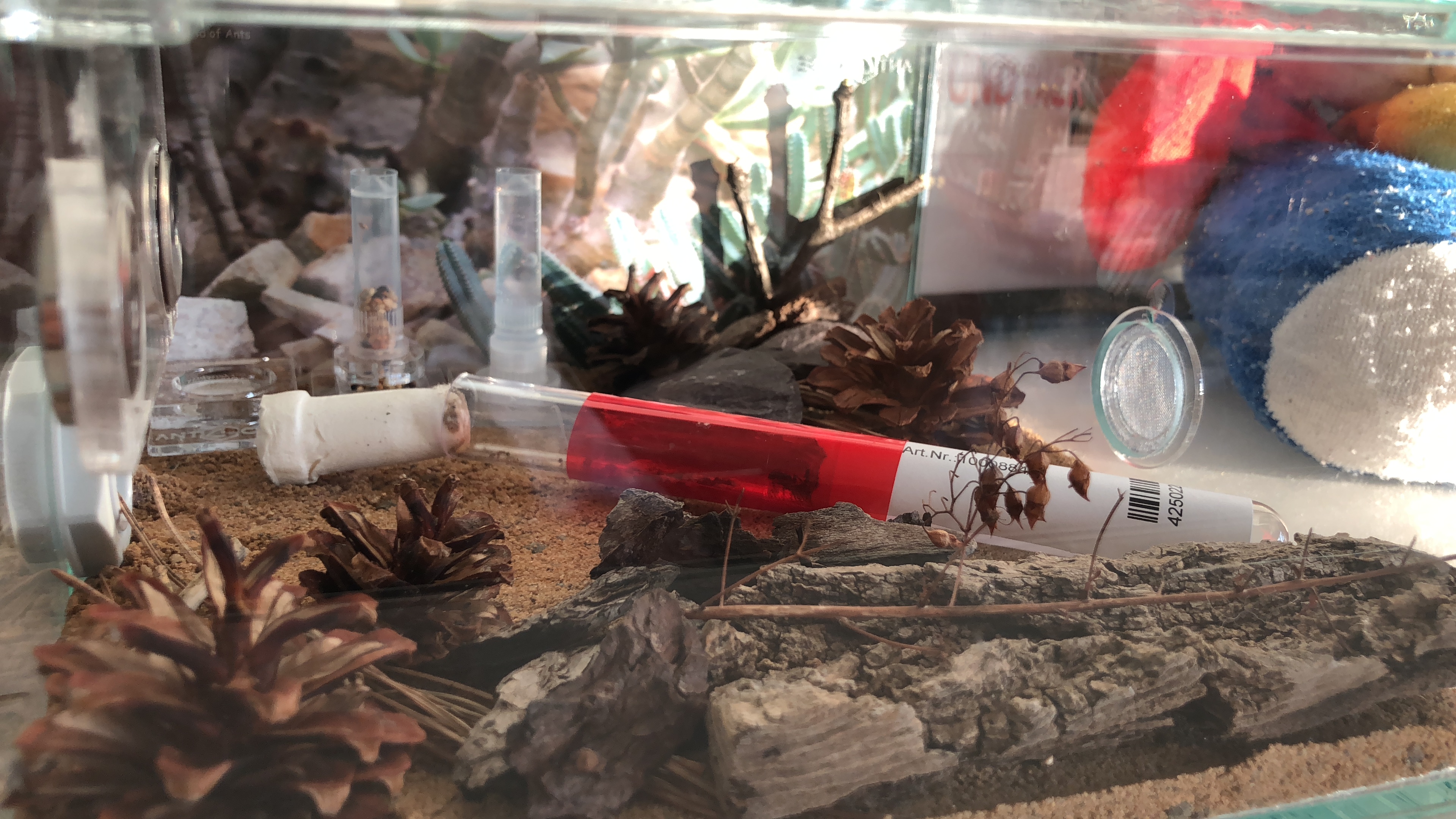 So nun zu meiner Kolonie: Die Kolonie ist in etwa 1,5 Jahre alt und umfasst um den Dreh 150 Tiere. Wie ihr da euch gut denken könnt sind es viel zu wenige Tiere fĂŒr eine 1,5-jĂ€hrige Kolonie. Dies ist auf die eben erwĂ€hnten Probleme zurĂŒckzufĂŒhren. Am Futter kann es meiner Meinung nach nicht gelegen haben, weil dieses immer sehr ausgewogen und vielseitig war/ist. Ich biete immer eine Vielzahl an Insekten und Körner.