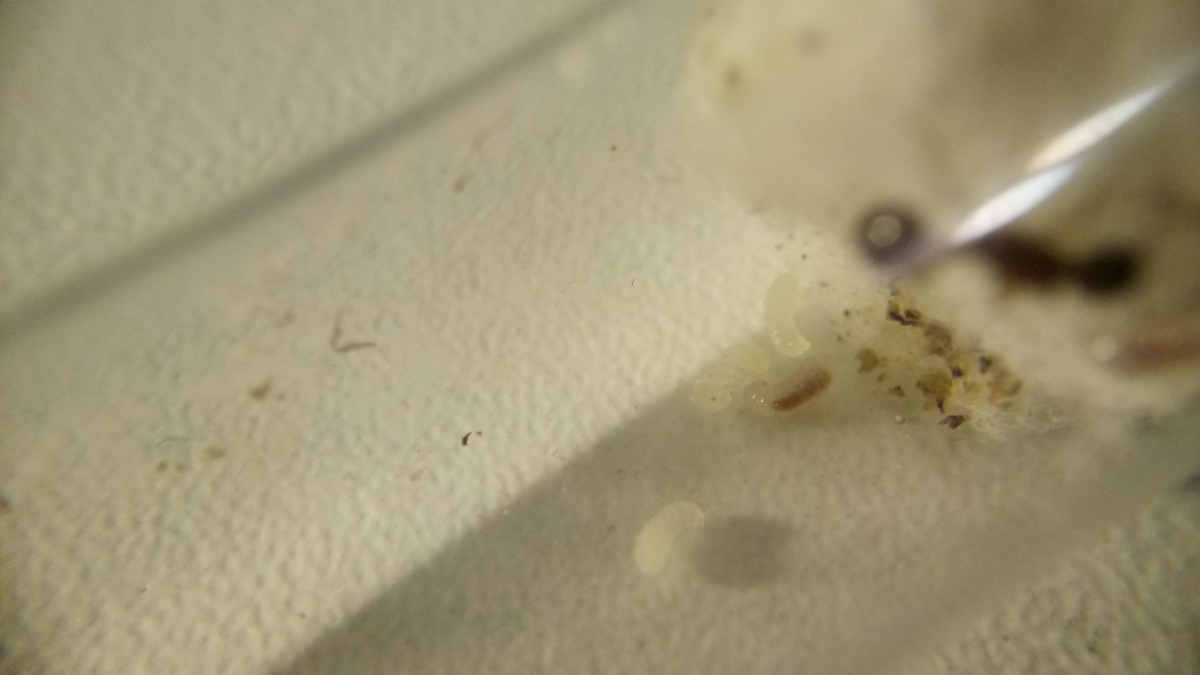 Kurz drauf war diese tot und in die Watte eingearbeitet... Die restlicheBrut scheint verschwunden.