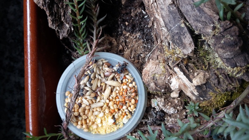 Hallo hier Bild 2 Hier sitzen sie alle um eine Fliege. Fliegen und manchmal Honig, mehr geht nicht bei denen. Die Vogelkörnchen sind viel zu groß für sie. Hab ich wieder raus. Blüten sind auch egal. Wie oft muss ich nun für meinen mini Ameisenstaat Fliegen füttern? (Urlaubsvertretung braucht ja gena...