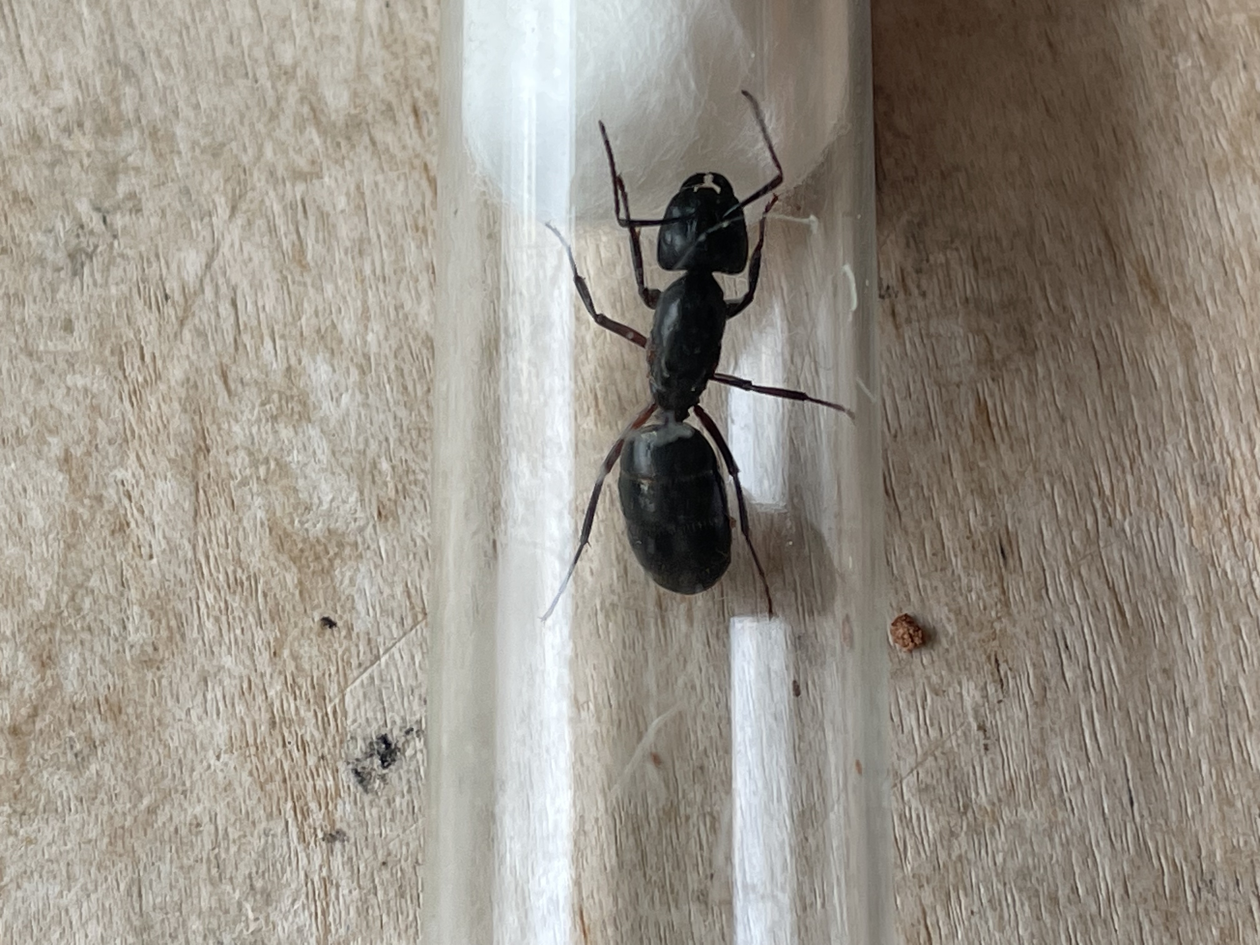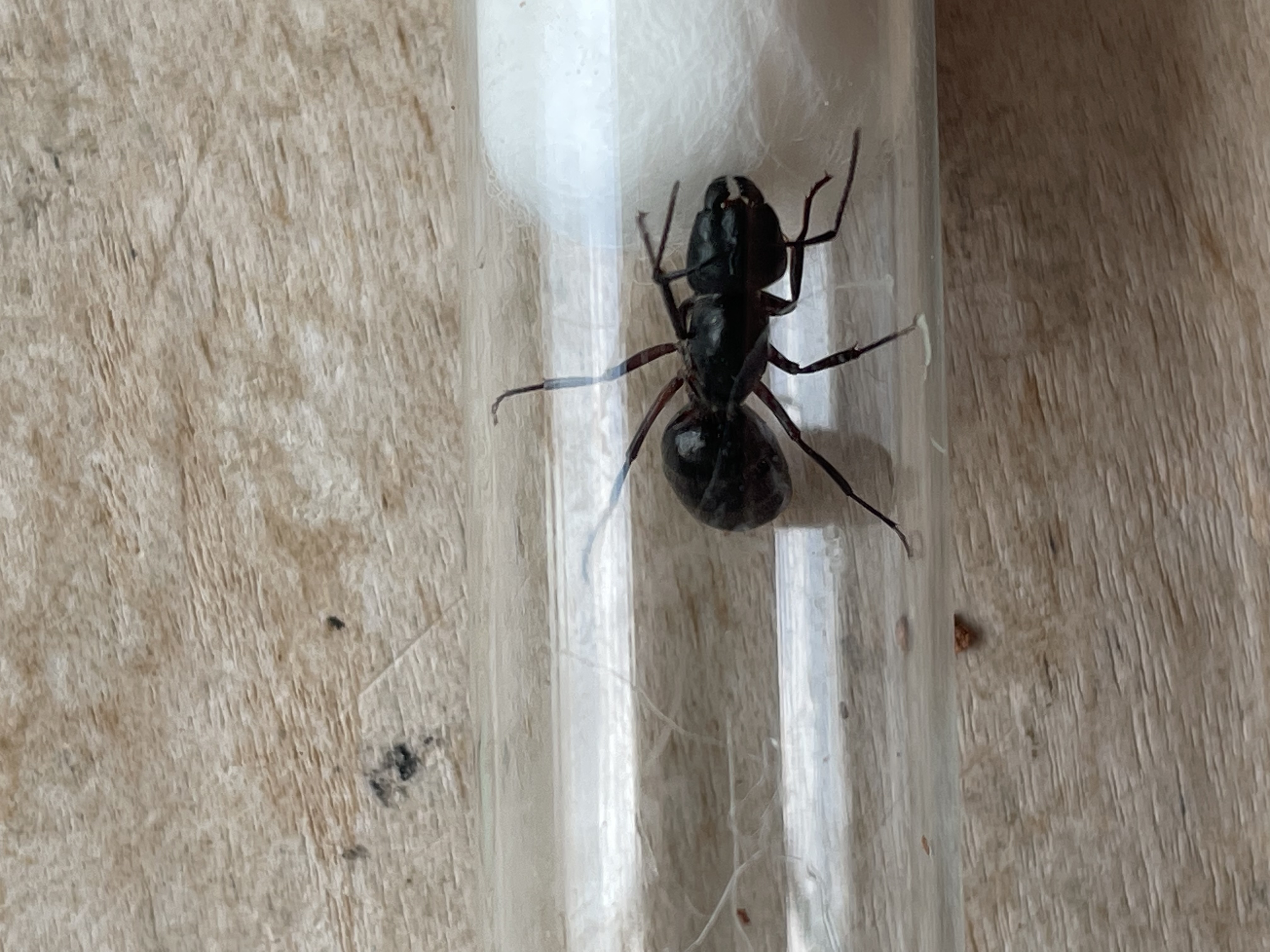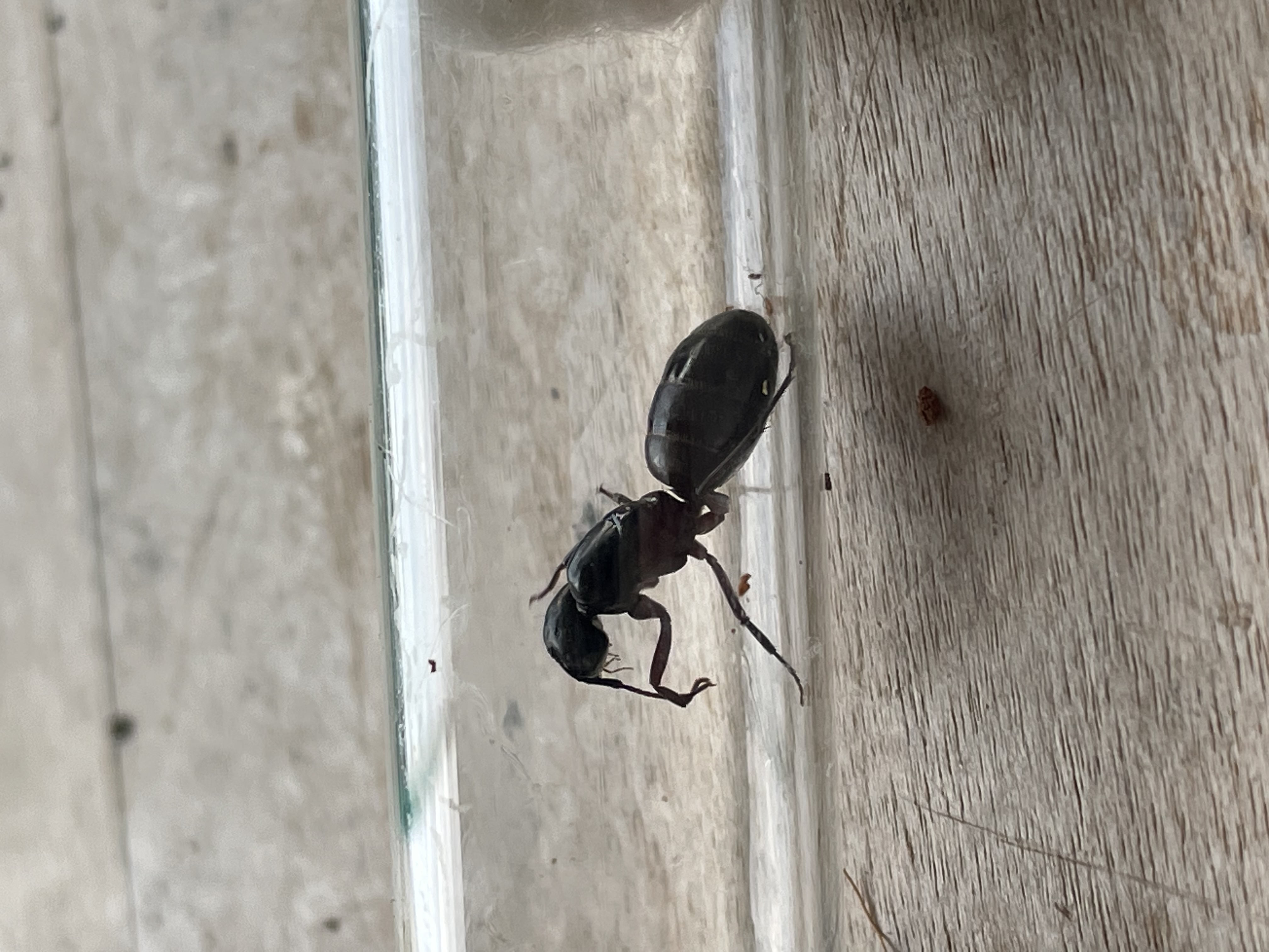 habe heute zufällig eine Königin aufgesammelt. Sie ist sehr dunkel, relativ groß (Camponotus sp. / Formica sp.?), jedoch kann ich nicht genau bestimmen welche Spezies.