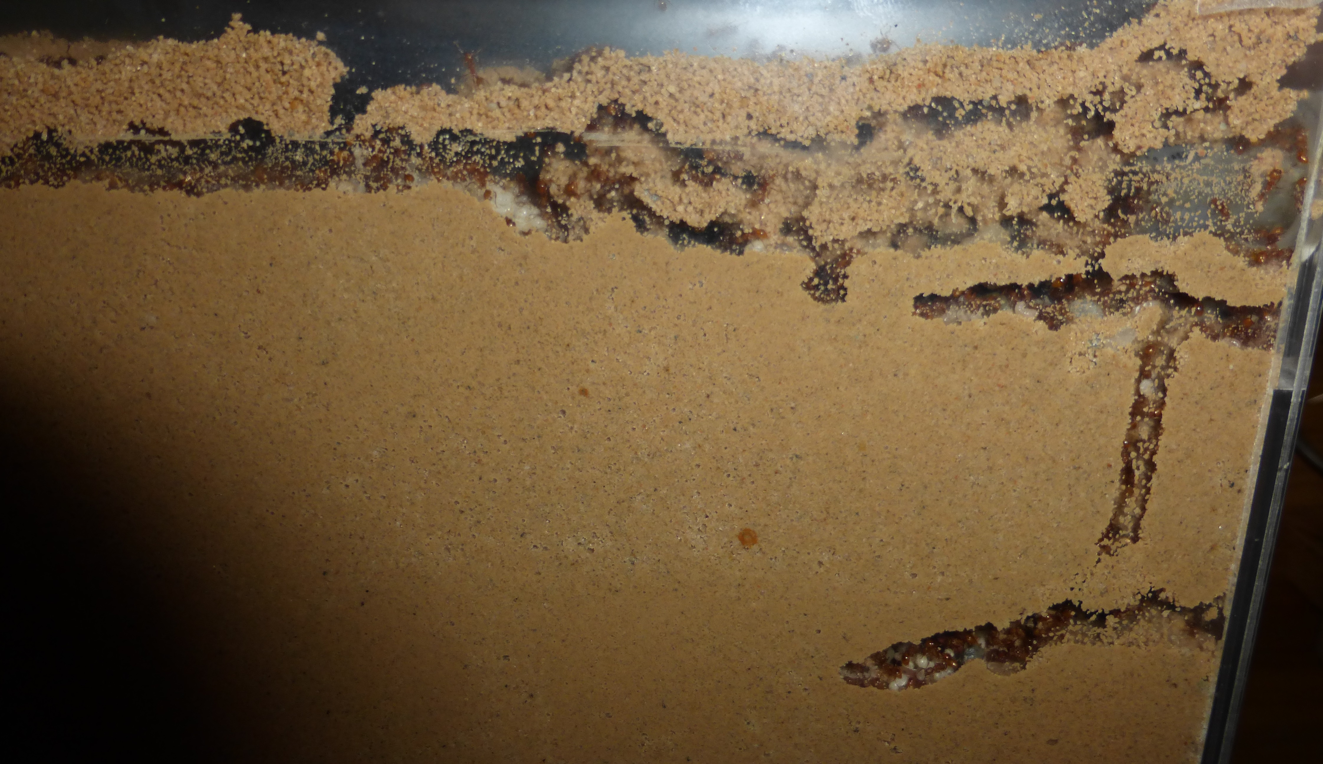 In solchen Nestern mit Sand zu arbeiten, kann schnell problematisch werden, wie du ja schon bemerkt hast. Ihn passend feucht zu halten ist nicht leicht. Und die Gefahr eines Einsturzes hat man immer.