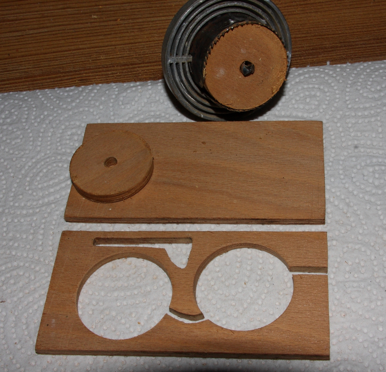 Mit einem „Lochkreissägebohrer“ werden die Kammern eingearbeitet, Verbindungsgänge mit der Laubsäge.