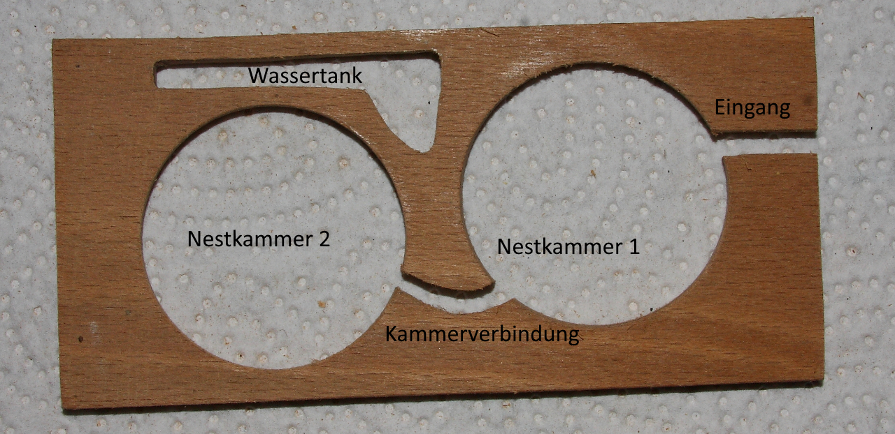 Nestkammern können auch nur mit einer Laubsäge ausgesägt werden, womit jede denkbare Kammerform gestaltbar wird.
