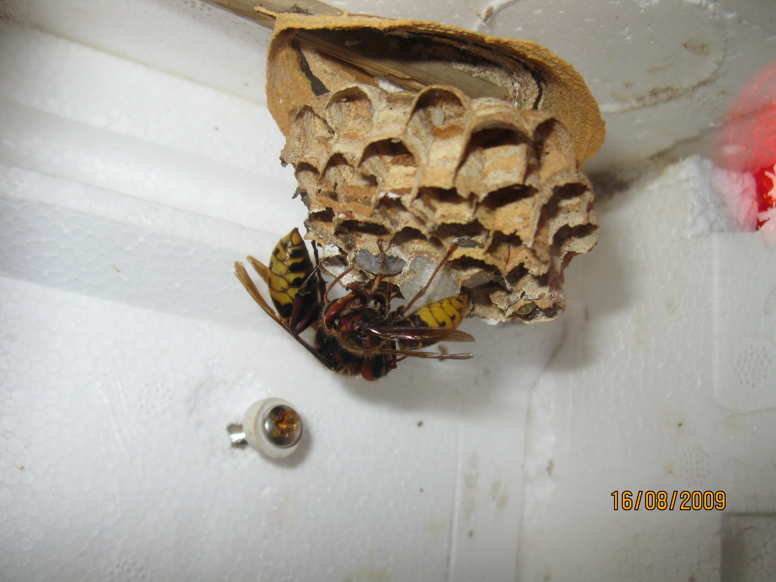 Dann noch die ständigen Besuche durch fremde Jungköniginnen. All dies geschah so ähnlich sicher auch bei anderen Hornissennestern, die zu dieser Zeit noch intakt waren. Und so ein Übernahmeversuch kann leicht das Ende eines Hornissennestes sein, dann, wenn beideKöniginnen sterben. Die gehen aufeinander los wie die Berserker, erst die tödlichen Verletzungen bei zumindest einer der Königinnen beenden den Übernahmeversuch.