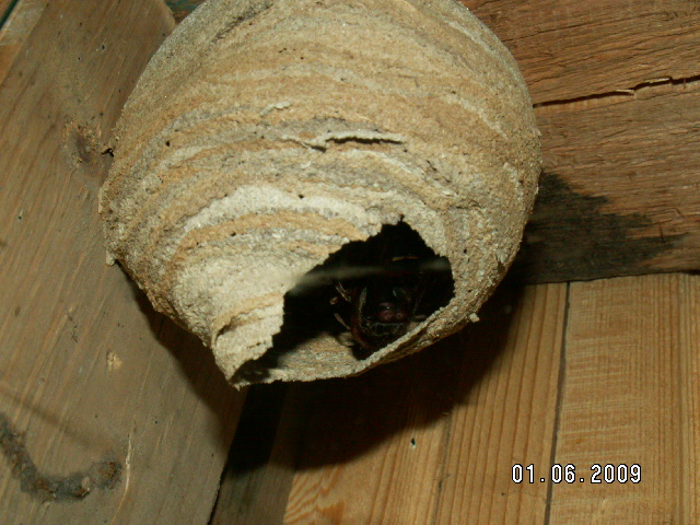 Es geht gut voran bei der Hornisse. Die Larven sind bereits gewachsen, das Nest wächst ebenfalls. Die Hornisse ist nun bei warmen Wetter fast ständig unterwegs, um Futter für sich und die Nachkommen zu beschaffen und um Bamaterial herbeizubringen.