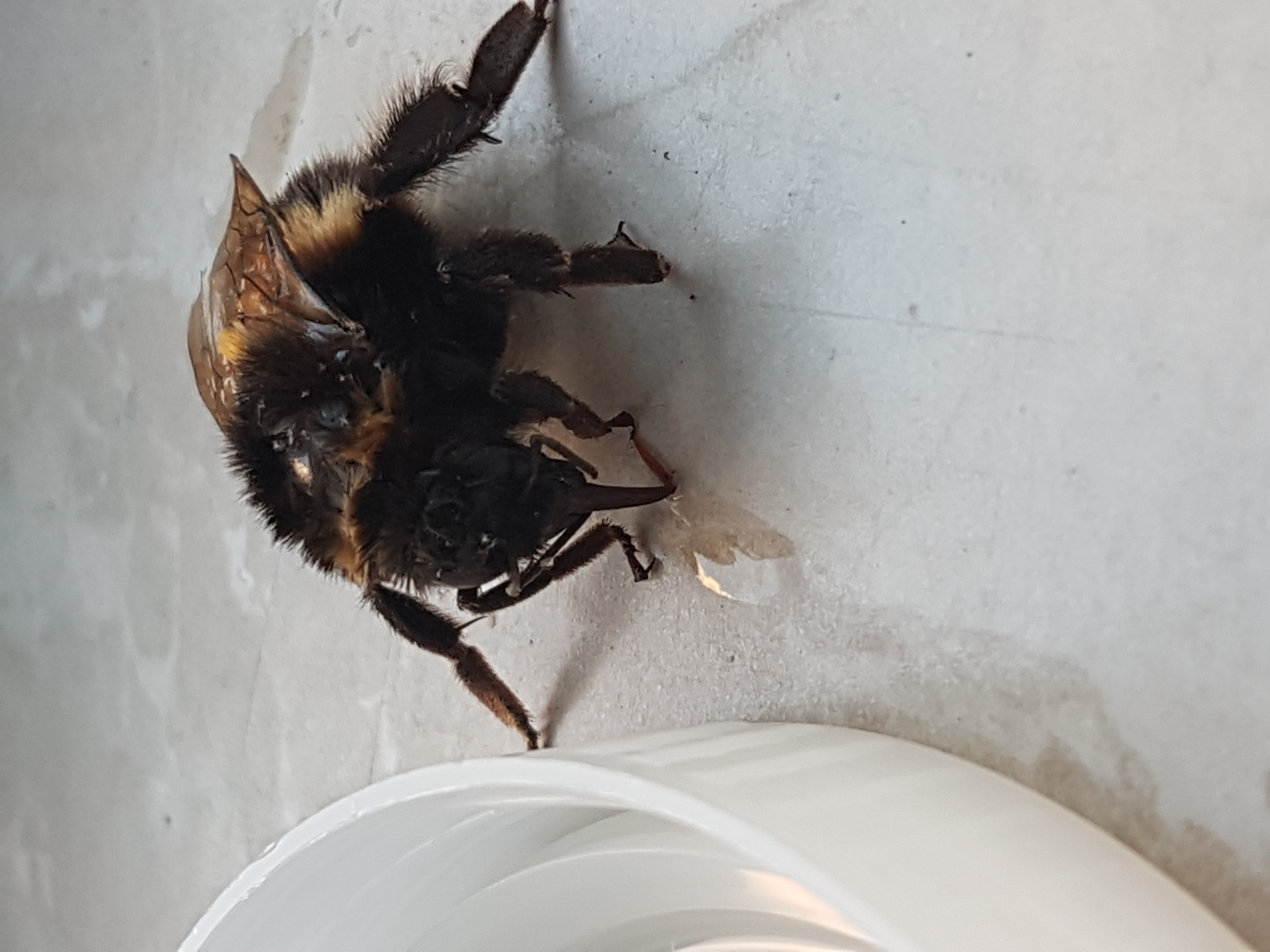 Bei meinem Abendspaziergang (ohne Gynen) kam mir immerhin eine schöne dicke aber sehr arg geschwächte Hummel vor die Füße, welche sich sehr einfach einsammeln ließ.