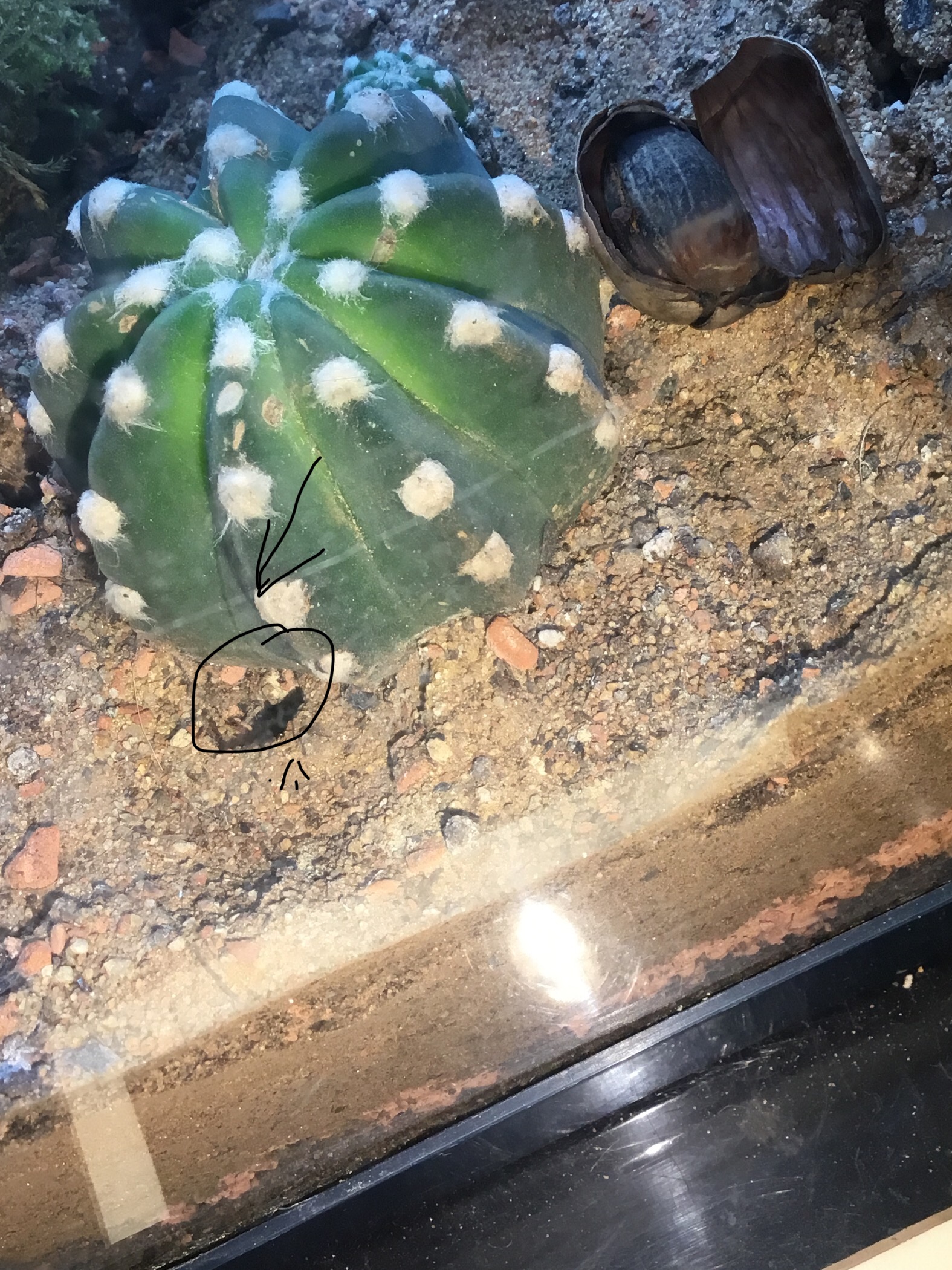Hab Kolonie 1 im Terrarium wieder gefunden, sie haben tatsächlich das kleine Korknest bezogen, dass ich ihnen mal schnell gebaut habe. Hab einfach ein kleines Stück Kork genommen, mittig in 2 Scheiben geschnitten und dann an 3 Seiten mit Holzleim verklebt.