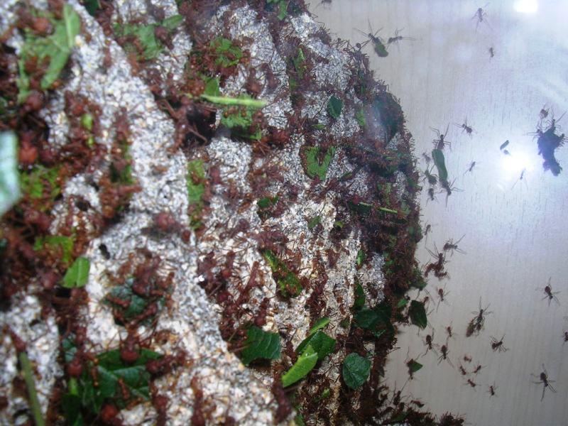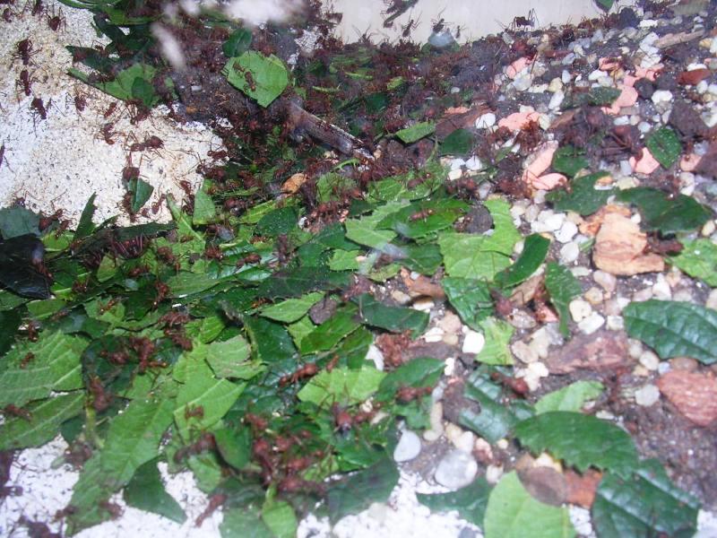 - Das war auch mal eine besondere Erfahrung. Oecophylla smaragdina sind imposante Tiere, sehr wiff und flink. Allerdings bekam ich eine Kolonie mit einer Gyne, deren meisten Beine fehlten, am Rücken lag, und daher nicht lange lebte. Da hatte ich wohl "die Katze im Sack" gekauft - die Kolonie kam in einem Blattnest ohne Einsicht.