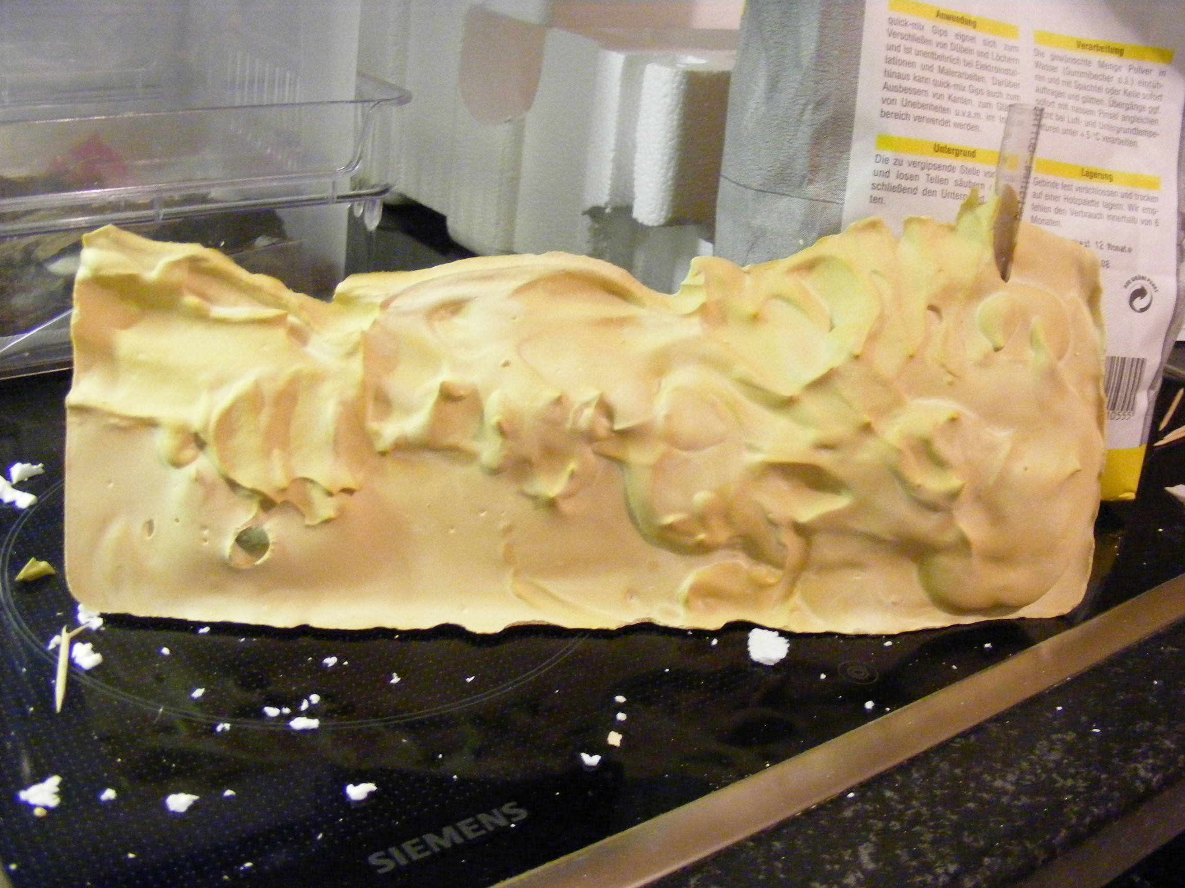 [/font][font=Arial]Das Wasser mit dem ich den Gips angemischt habe, habe ich vorher mit Lebensmittelfarbe gefärbt so das der Gips etwas natürlicher aussieht.