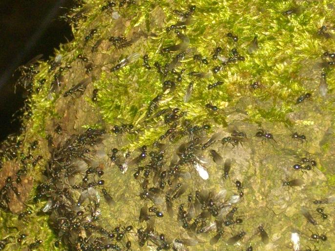 Die abgebildeten Ameisen sind leider so klein dargestellt u. man kann auch nicht zoomen. Der schemenhaft erkennbare Habitus könnte aber zu Lasius fuliginosus fĂŒhren. Die schwĂ€rmen heuer sehr frĂŒh und sind bereits "unterwegs"!