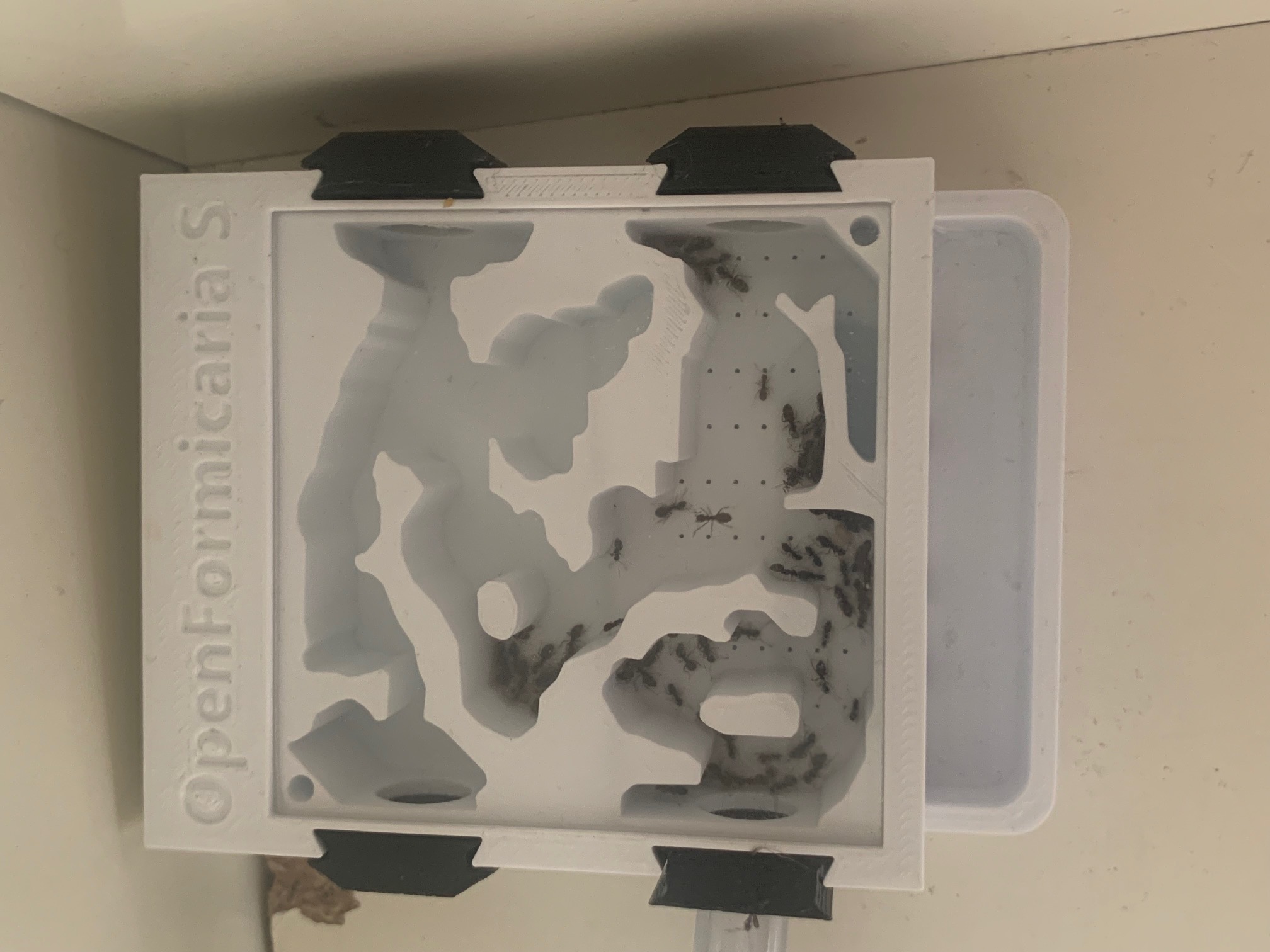 Fürs erste möchte ich eine kleine Arena mit ca. 16 x 8 cm Grundfläche sowie ein selbst gedrucktes 3D-Nest 6 x 6 cm anbieten. Reagenzglas kann ich direkt andocken, so dass sich die Kolonie natürlich frei entscheiden kann, ob und wann sie umziehen will. Spricht etwas dagegen?