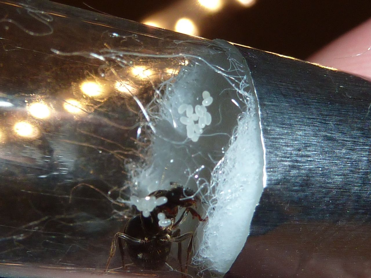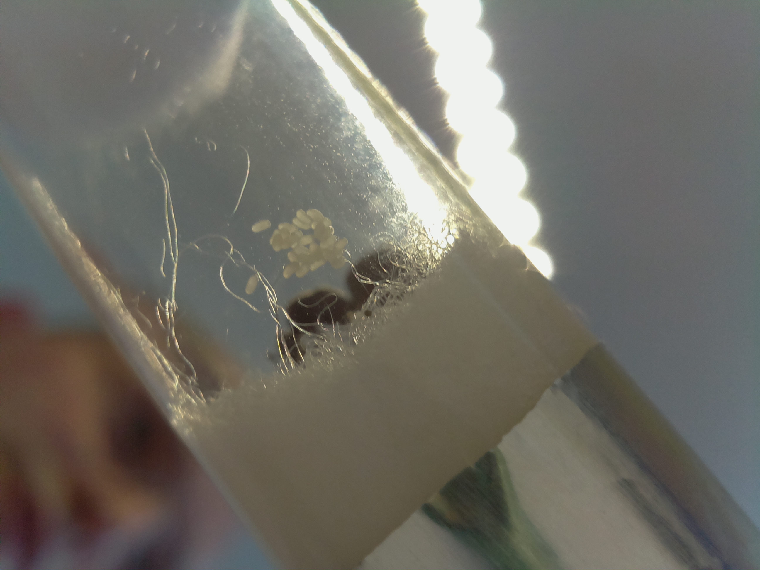 Umzug ins Reagenzglas verlief problemlos – nur eine der Gynen ist unterwegs abgehauen und in der Dunkelheit auf dem Parkplatz entwischt. Daher sind nur noch 2 Gynen übrig. Sie haben jeder ihr RG bekommen und ich habe diese mit Alufolie abgedunkelt.