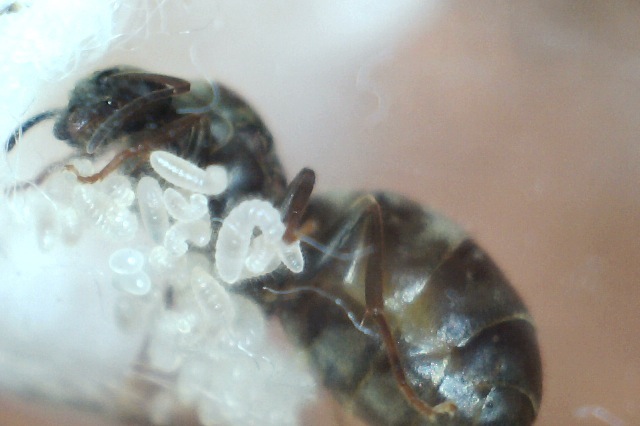 Sie kamen alle zu ruhe. 4 hatten noch Flügel und 2 haben diese während meines Becher bauen abgestoßen. Nach ca. 30 min waren die 3 Flügellosen am Boden des Bechers und putzten sich. Die noch geflügelten hockten nahe am Rand des Bechers und wollten offensichtlich raus. Ich habe sie wieder raus gebracht und sie flogen nach kurzer Zeit zurück in die Freiheit.
