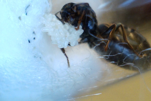 Bei den 3 Tage später gefangenen Gynen gibt es noch keine Larven aber Eier die schon sehr geriffelt aussehen, daher rechne ich jederzeit mit dem schlüpfen.
