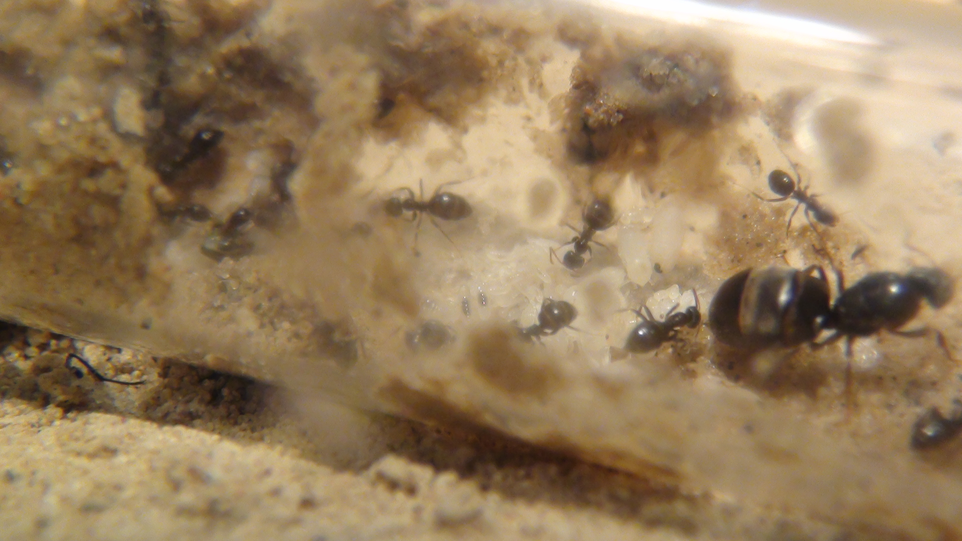 Was mich am meisten freut, ist die geringe Sterberate. Durch die ganze Saison sind vielleicht etwa 5 Ameisen gestorben. 2 davon blieben im Paraffinöl "kleben" und eine davon ertrank. Die anderen zwei waren Pygmäen.