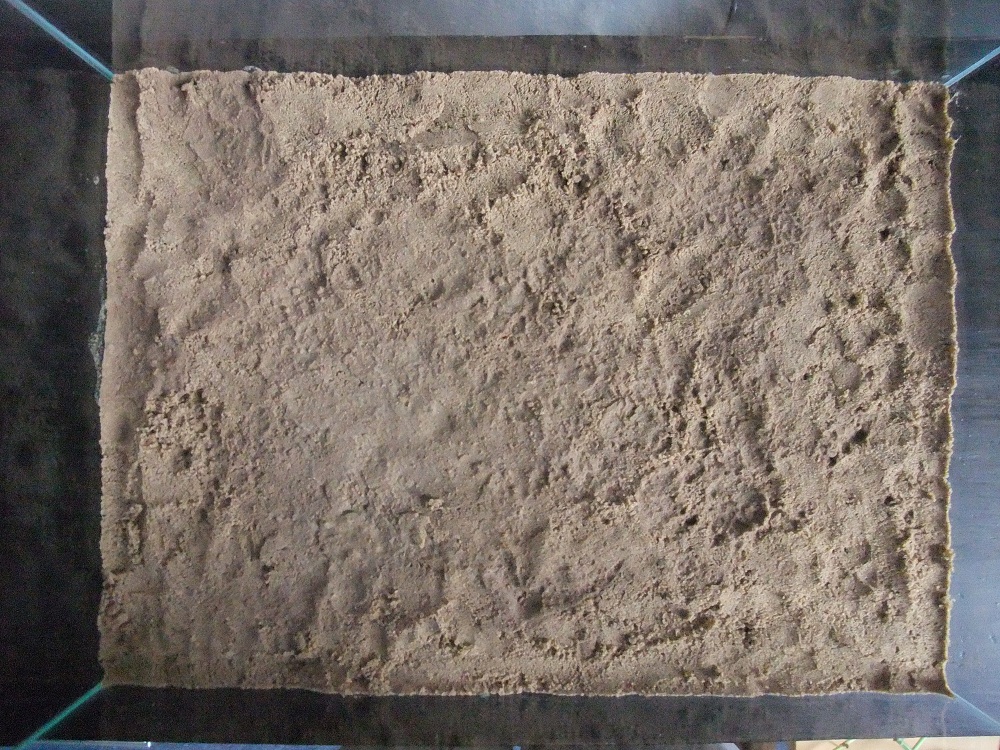 Als nächstes möchte ich gern das Sand-/Lehmgemisch ca. 1 cm hoch im Becken als Bodengrund einfügen und dies dann bewässern.