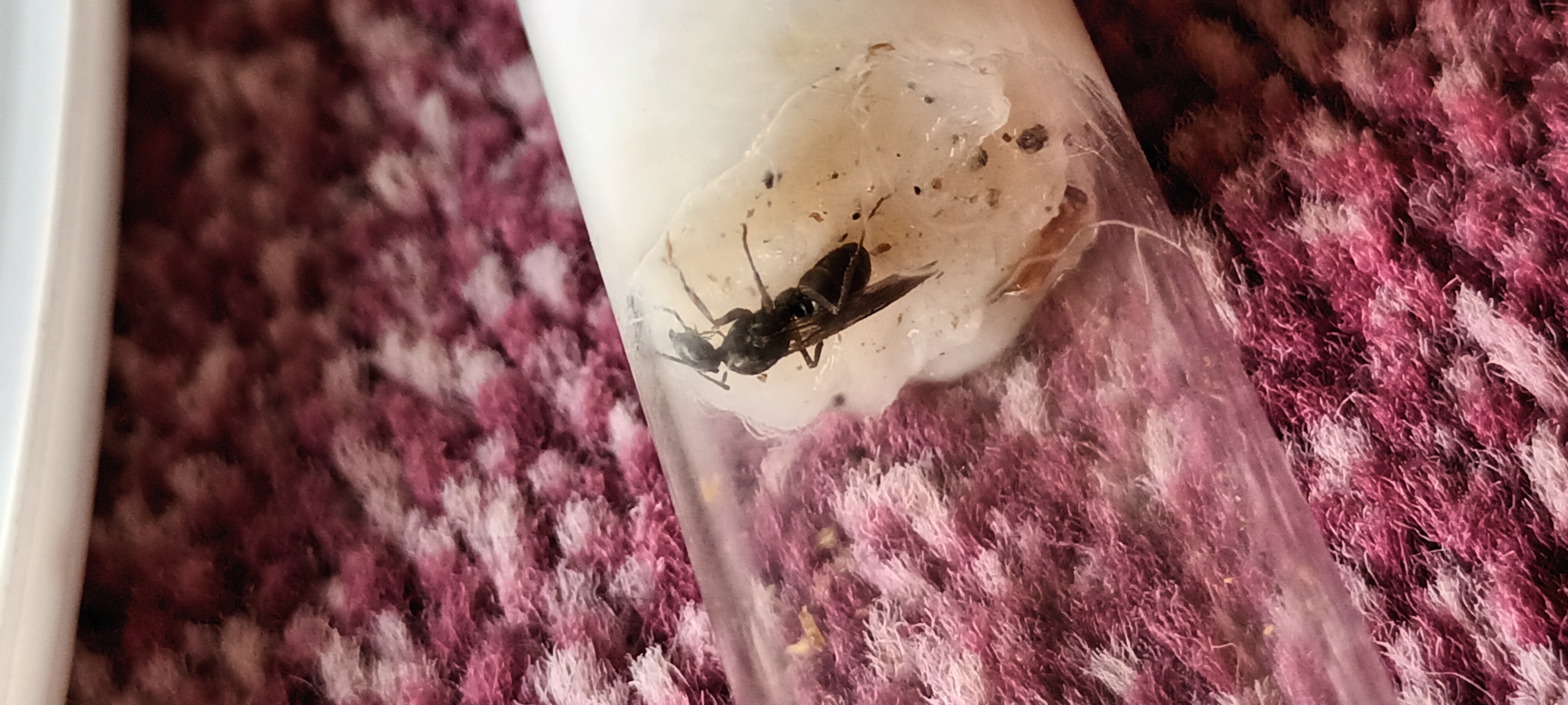 Info: In der NĂ€he (Umkreis 1km Luftlinie) sind haufenweise Lasius fuliginosus Nester. Direkt nebenan war ein Nest deren Art ich leider nicht identifizieren konnte. Die Arbeiterinnen waren so groĂ, wie der