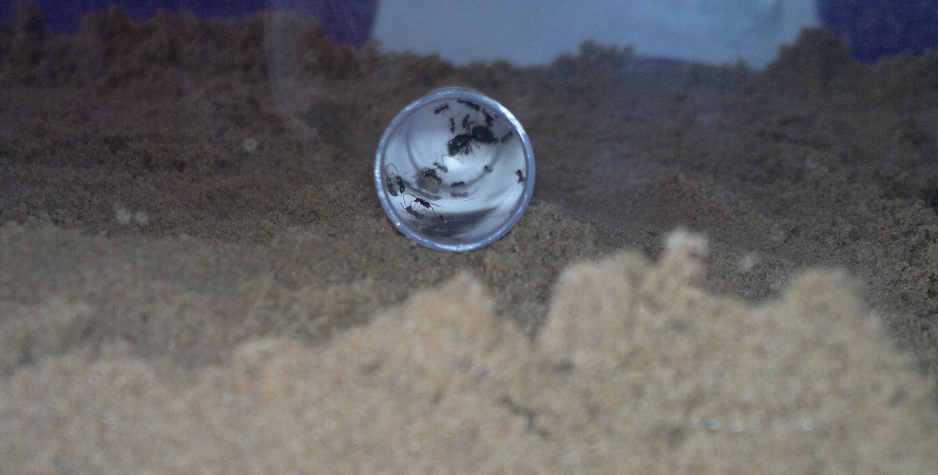 Als Nahrung habe ich erstmal Zuckerwasser bereitgestellt und ich schnippel denen gleich noch einen Mehlwurm vor den Eingang, mal sehen ob sich da was tut.