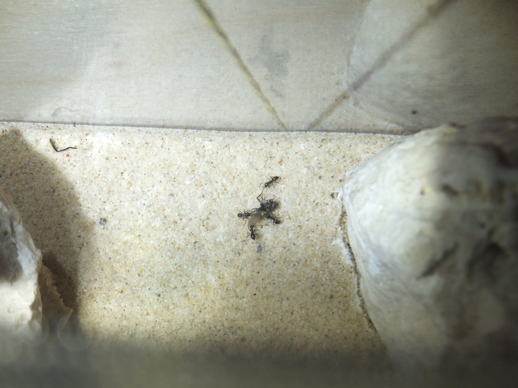 (*) Das ZĂ€hlen der Ameisen ist recht schwer, da sie ein Zusatzversteck unter einem Stein in der Arena haben, wo sich immer einige Ameisen aufhalten.