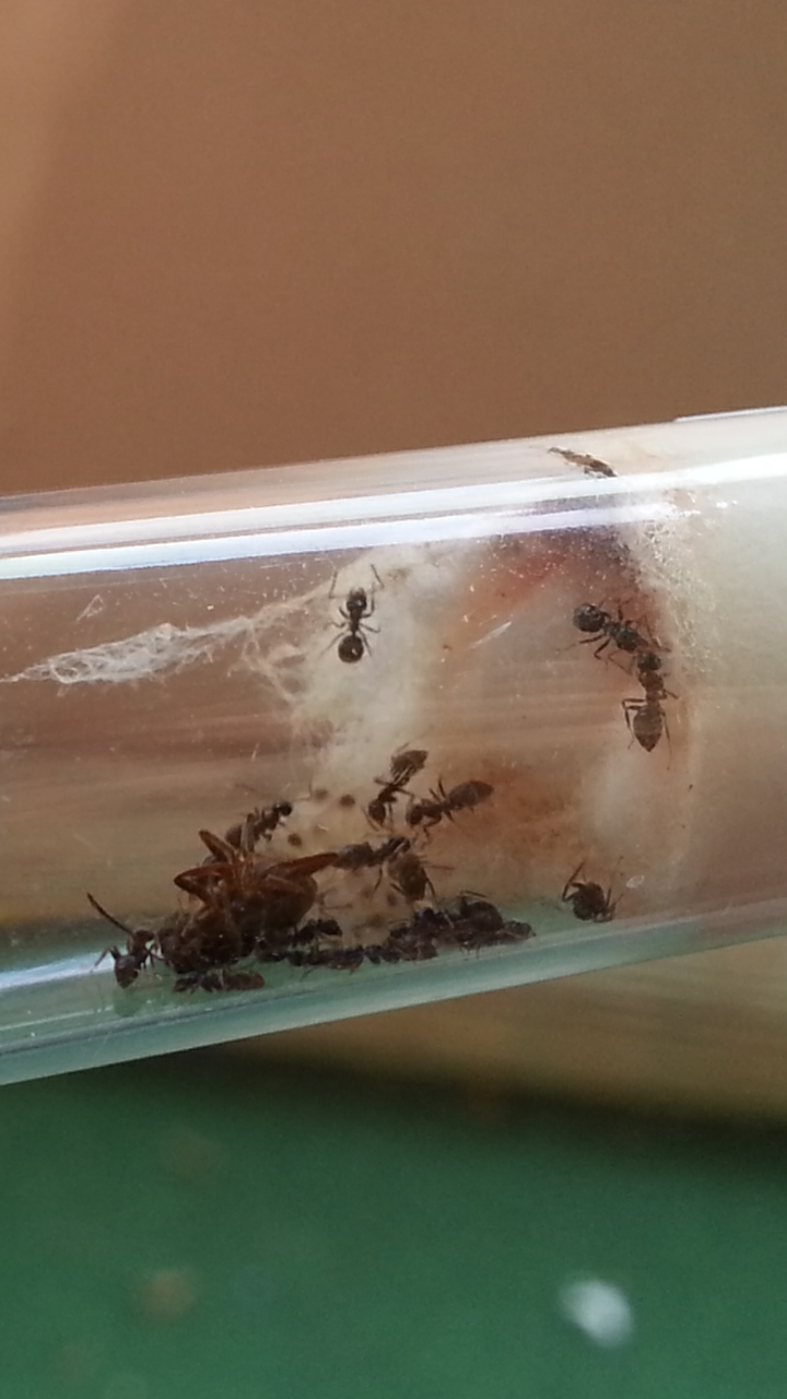 Ich habe vor einer Woche zwei Lasius niger Arbeiterinnen von draußen verfüttert. Natürlich abgekocht.