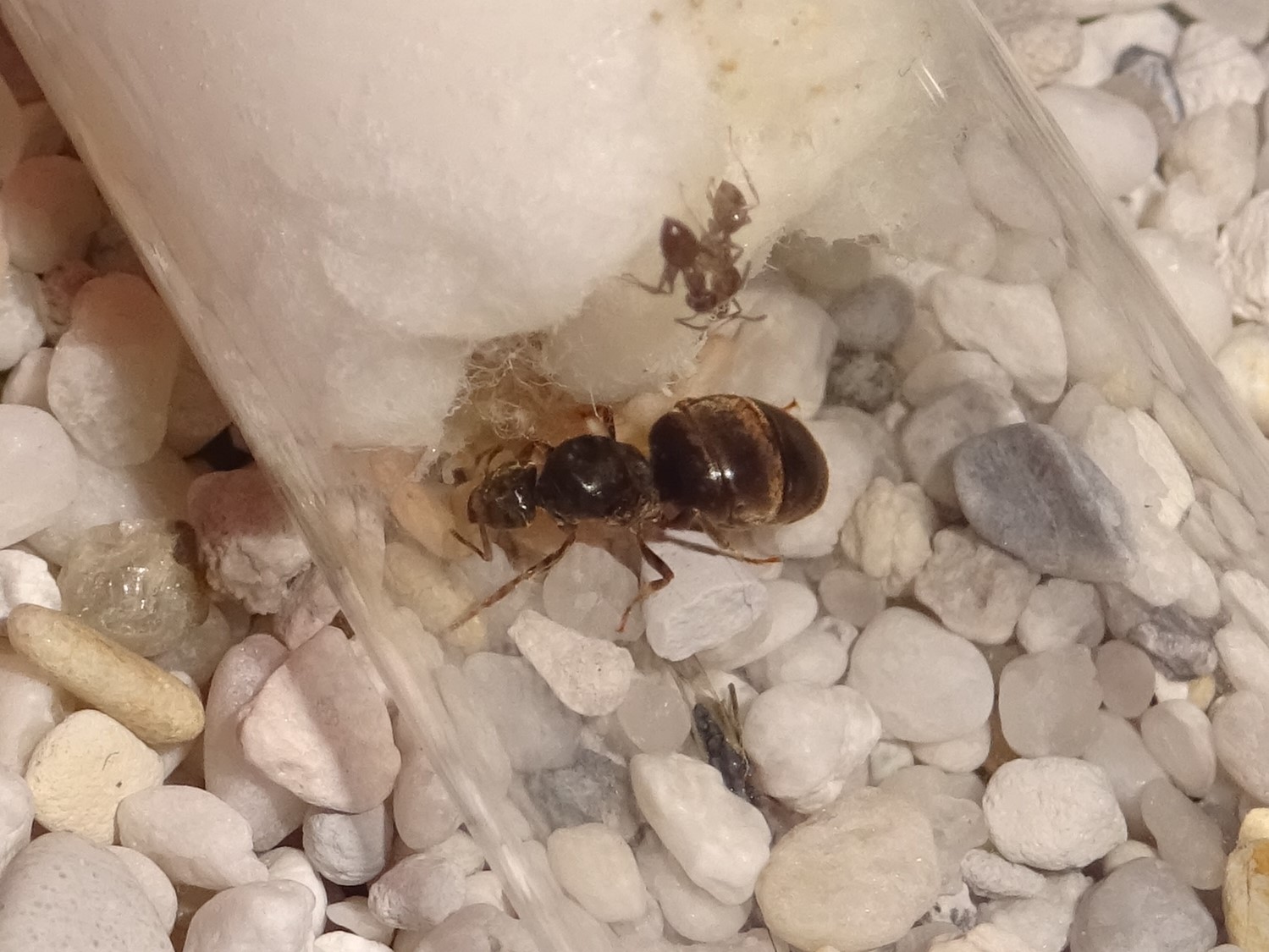 In der kleinen Arena steht momentan das Gipsnest, was später als externes Nest betrieben werden soll, wenn die Kolonie erst einmal da drin wohnt
