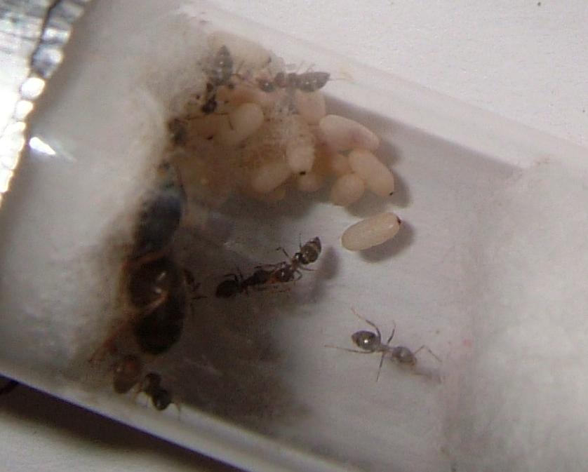 Muss sagen, die Zusammenarbeit bei den Kleinen klappt deutlich besser als bei meinen Lasius niger-Volk in der gleichen Stärke bzw. sogar bis noch vor kurzem (ca. 20-25 Individuen), sprich die Rekrutierung ist bereits jetzt deutlich zu erkennen.
