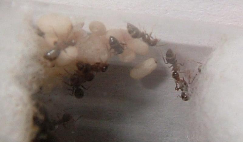Ich werde mal bei gegebener Zeit mir die Arbeiterinnen mal genau anschauen und miteinander vergleichen, ob evtl. schon "richtige", große Arbeiterinnen darunter sind oder ob die Kolonie noch kplt. aus Pygmäen besteht.
