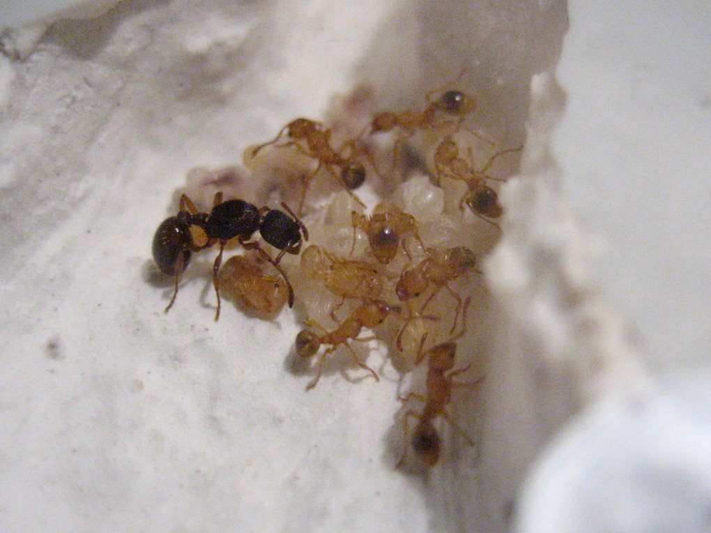 [font=Times New Roman]Das vorletzte Bild zeigt sehr deutlich bei der Arbeiterin den scharfen Knick im linken Fühlerschaft nahe der Basis. Auch ist der allgemeine Habitus der Arbeiterin klar der einer Myrmica und keinesfalls einer Leptothorax oder Temnothorax.[/font]