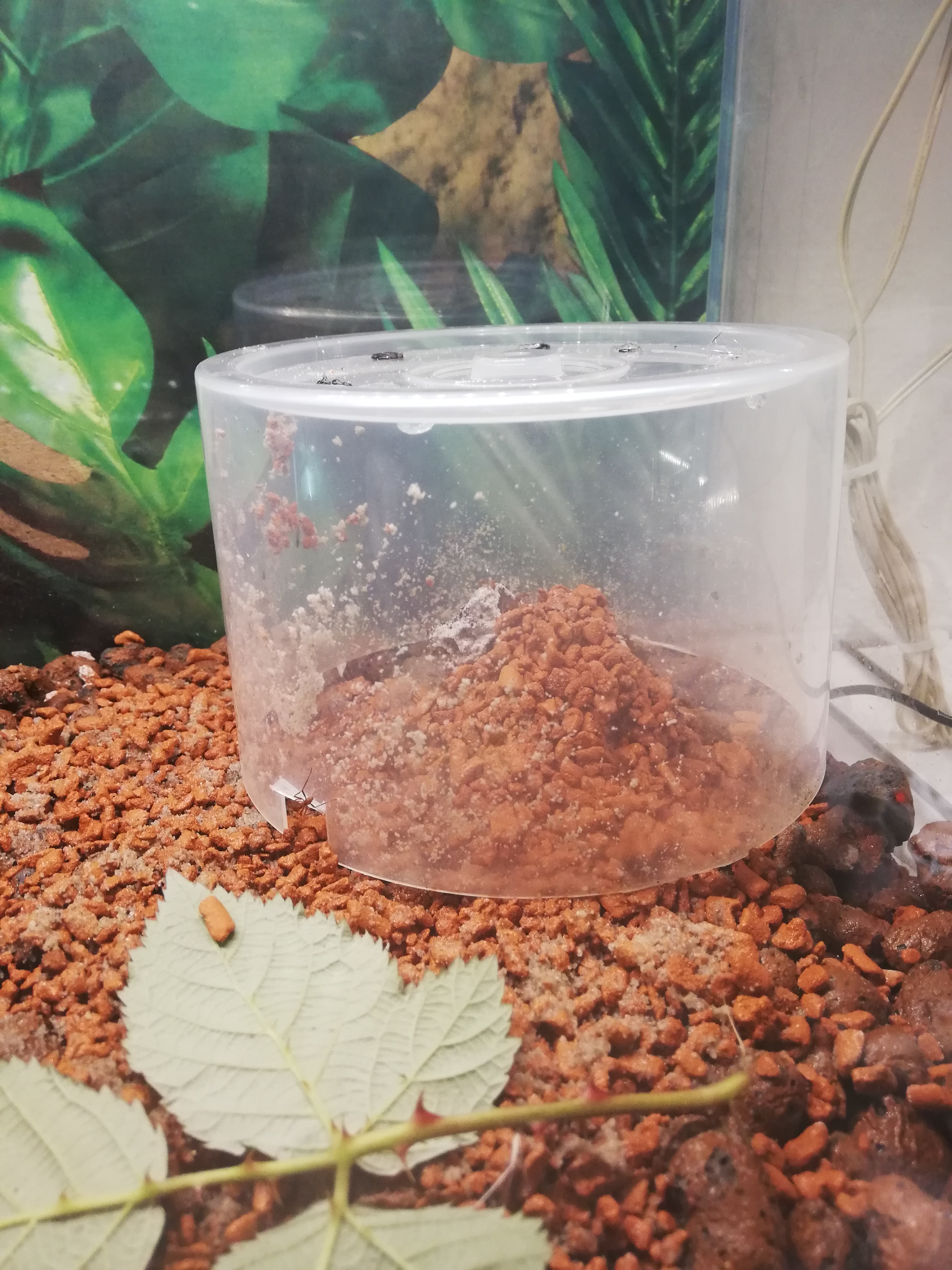 Habe ihnen Probeweise 3 Cornflakes rein getan. 1 haben sie gleich beim Müll gelagert. Im Nachhinein glaube ich weil das eine auf dem feuchten Boden lag und schimmeln würde. Die anderen beiden liegen je auf einem Blatt. Diese liegen noch, wurden allerdings noch nicht angerührt.